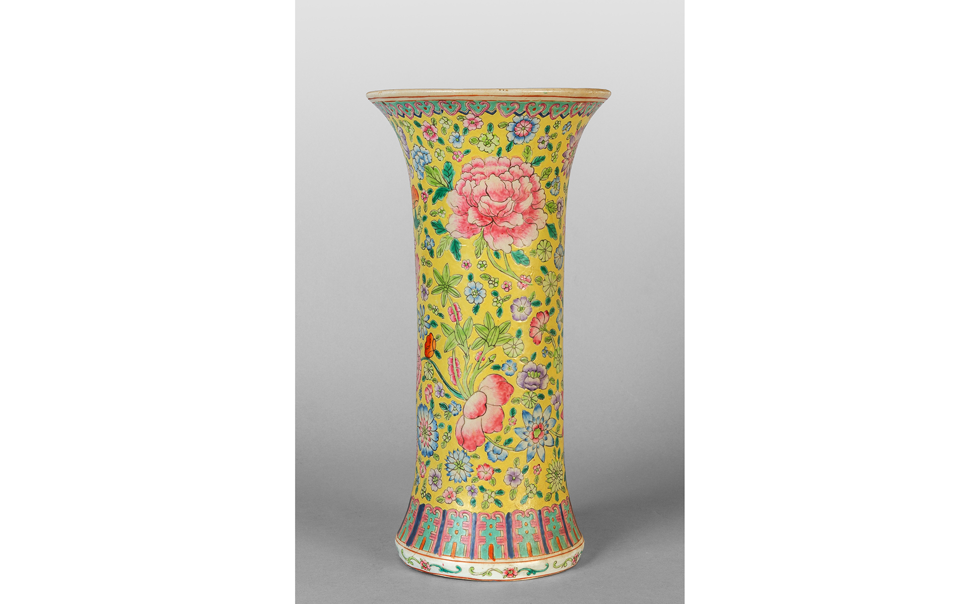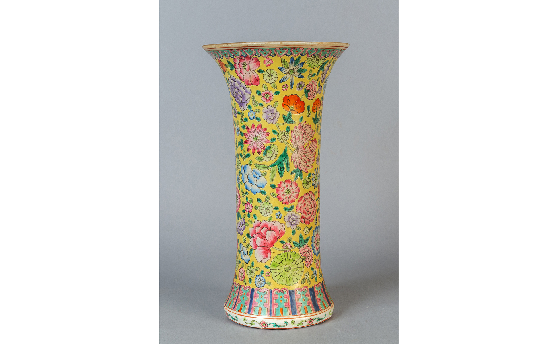 Vaso in porcellana di Cina decorato in policromia a fiori su fondo giallo sec.XIX
