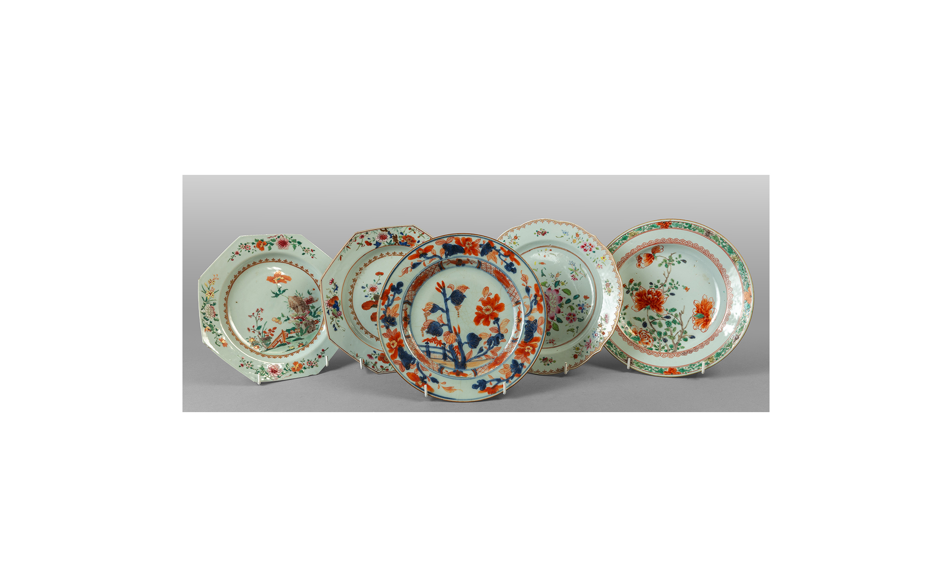Cinque piatti in porcellana di forme diverse Cina sec.XVIII