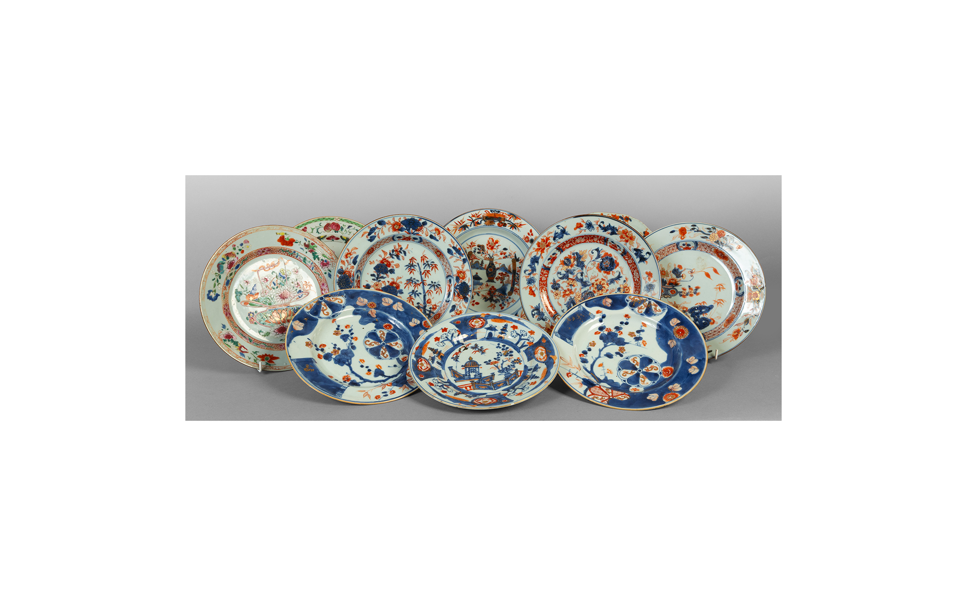 Dieci piatti in porcellana policroma Compagnia delle Indie sec.XVIII