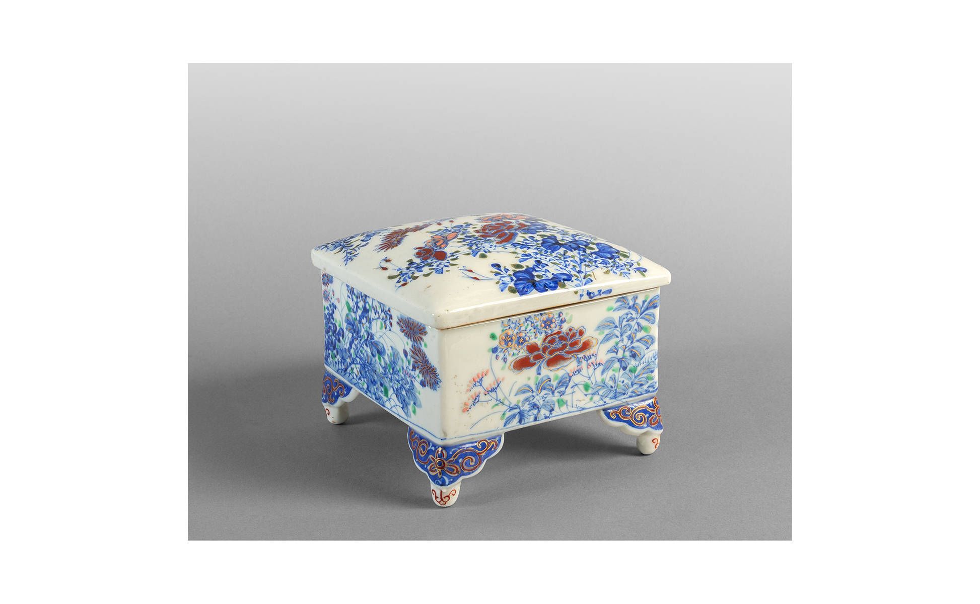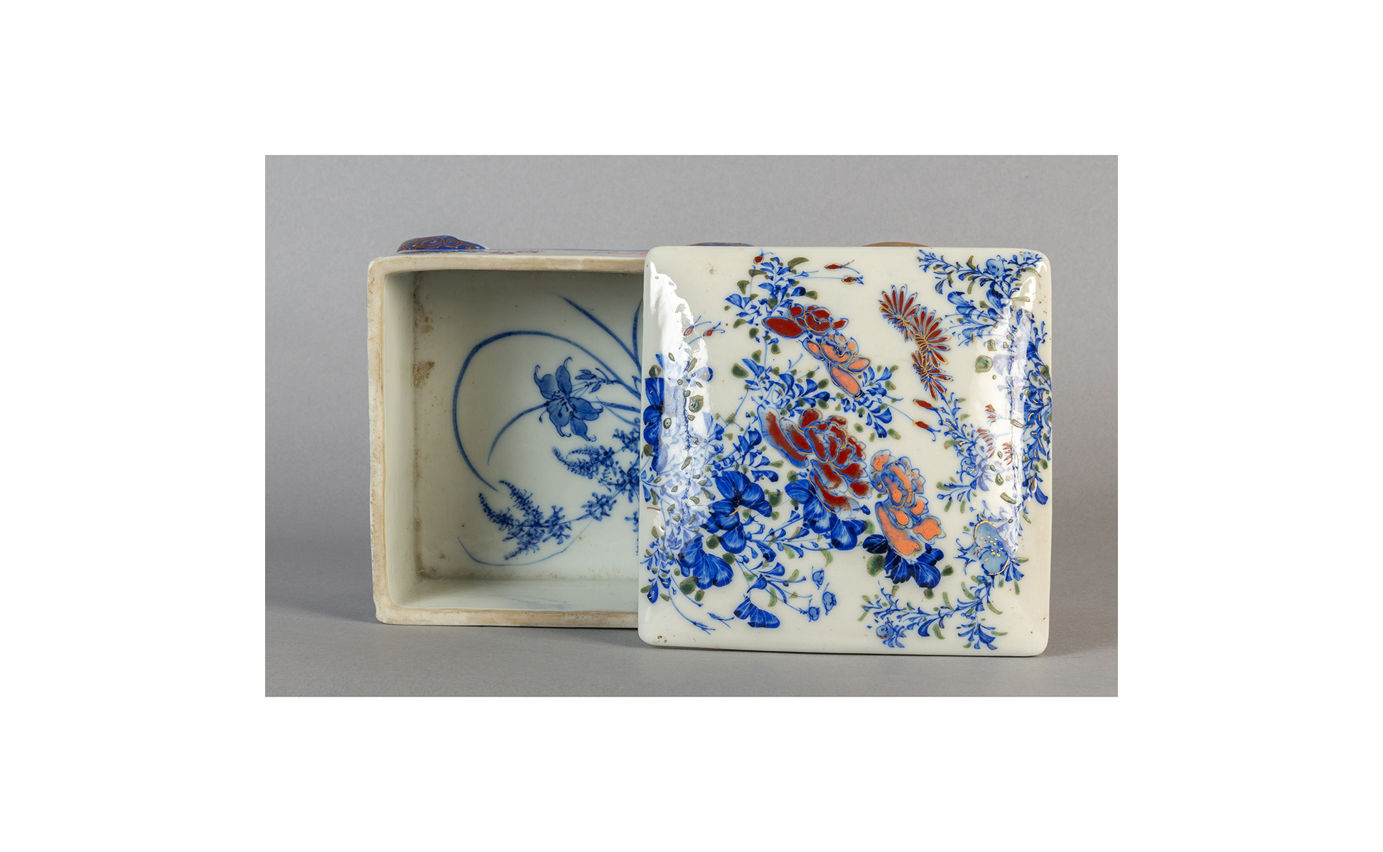 Scatola in porcellana bianca decorata in policromia Giappone sec.XIX