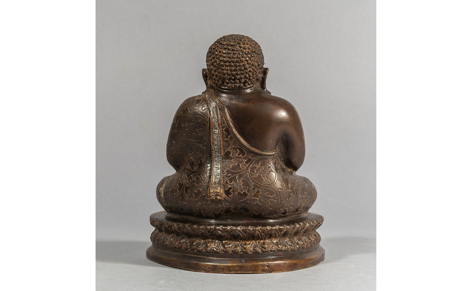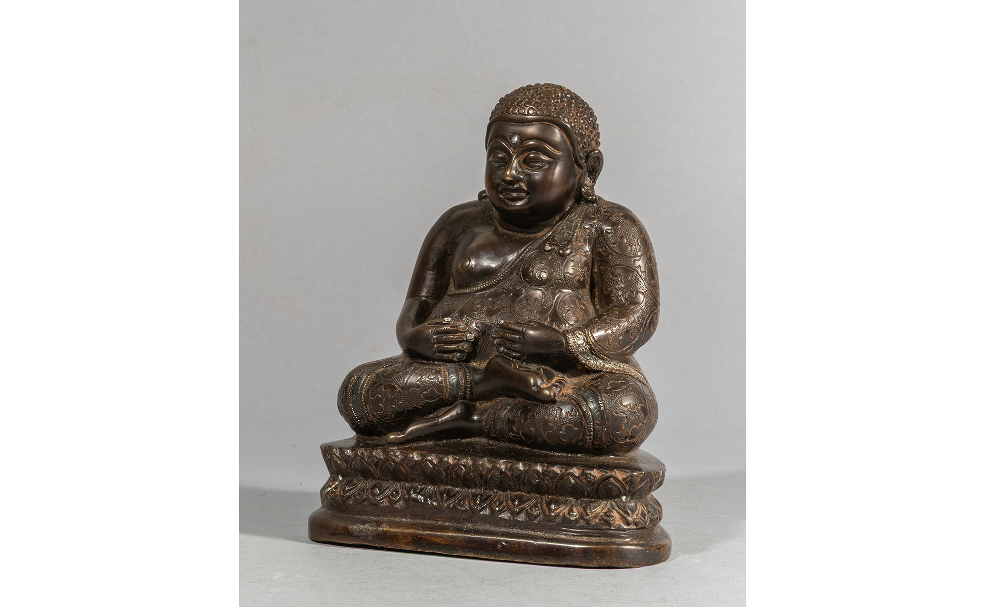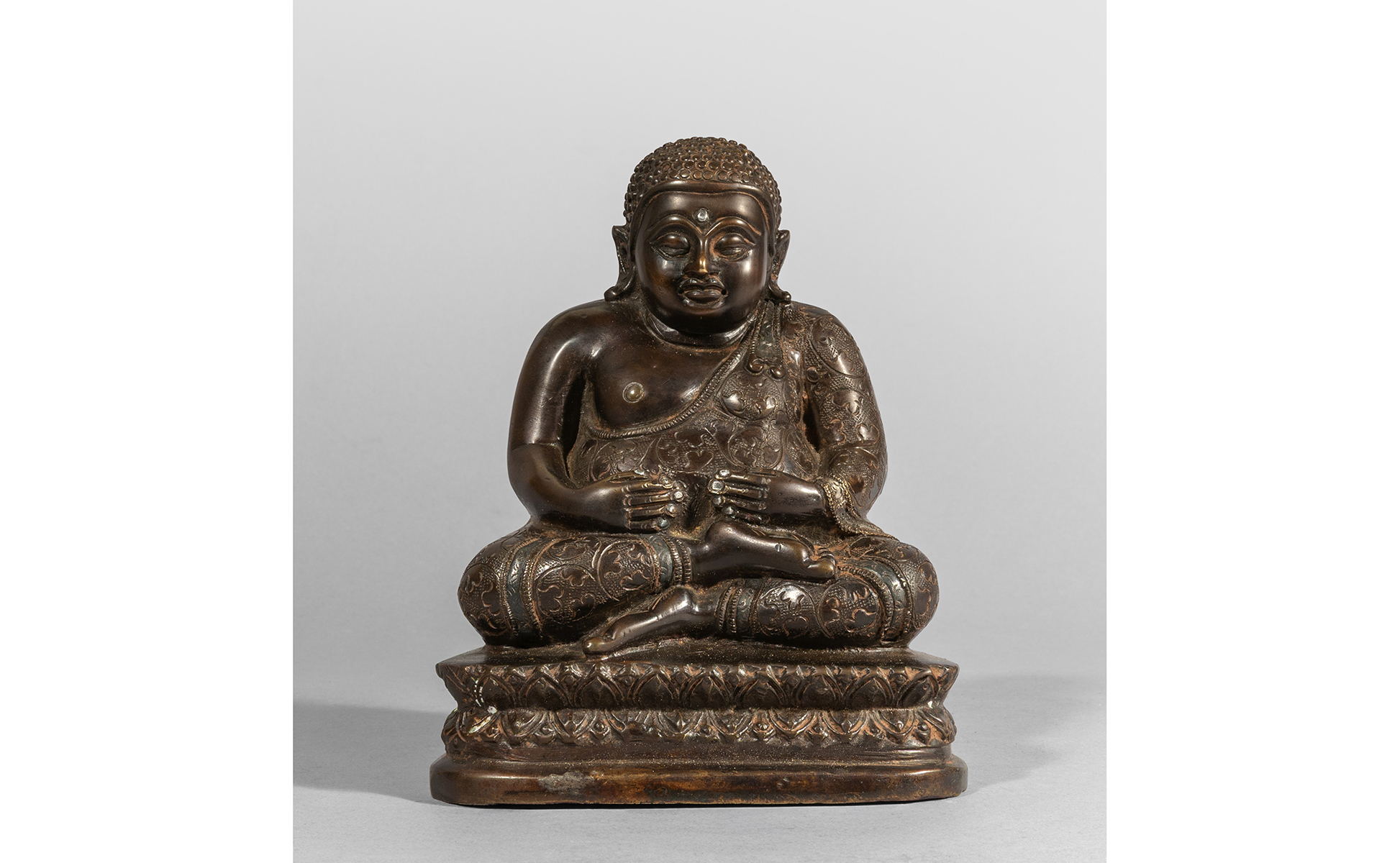 Buddha scultura in bronzo con inserti in argento Cina sec.XIX