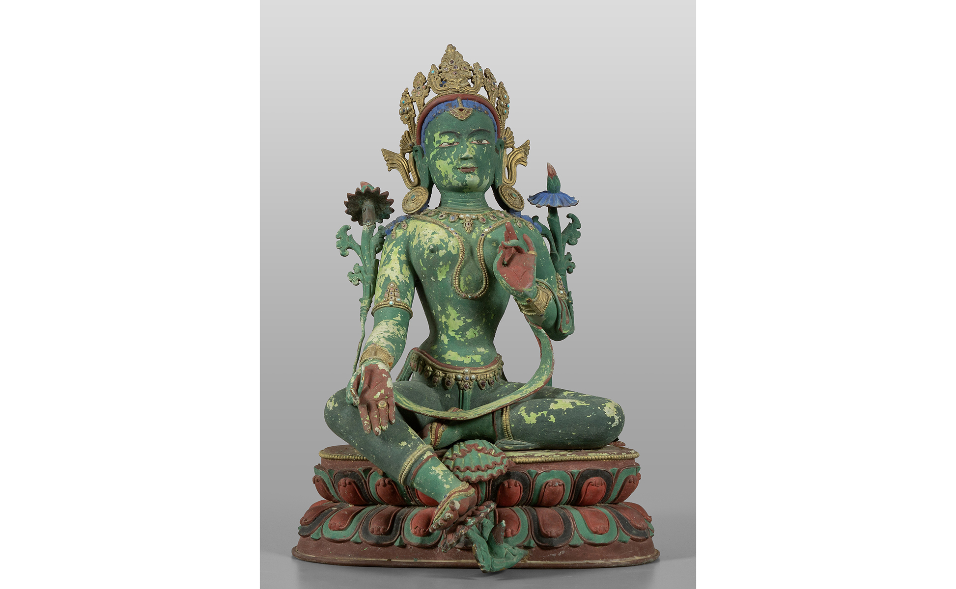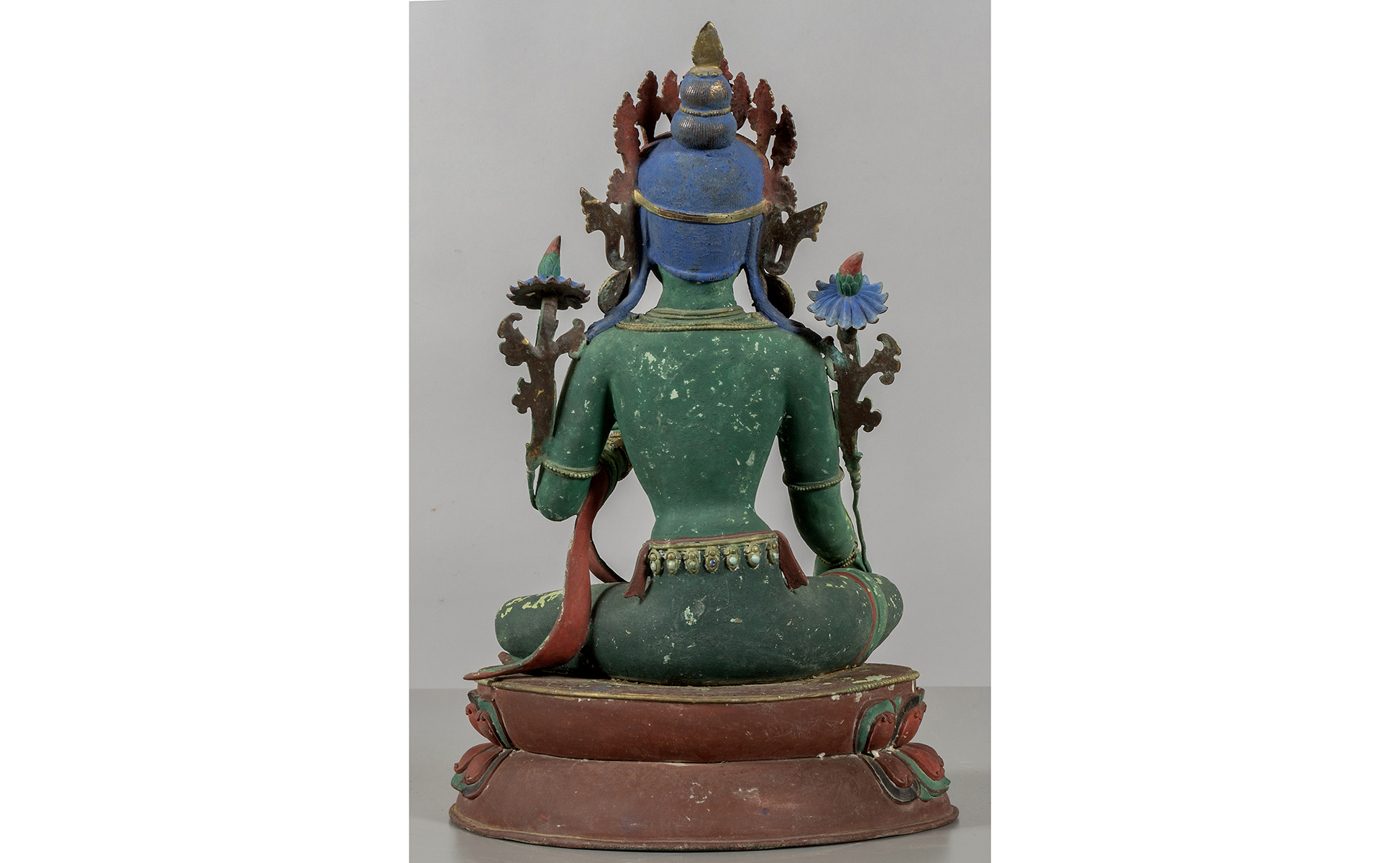 Tara verde scultura in bronzo smalto policromo e dorature nella corona intarsi in pietre dure Cina sec.XIX
