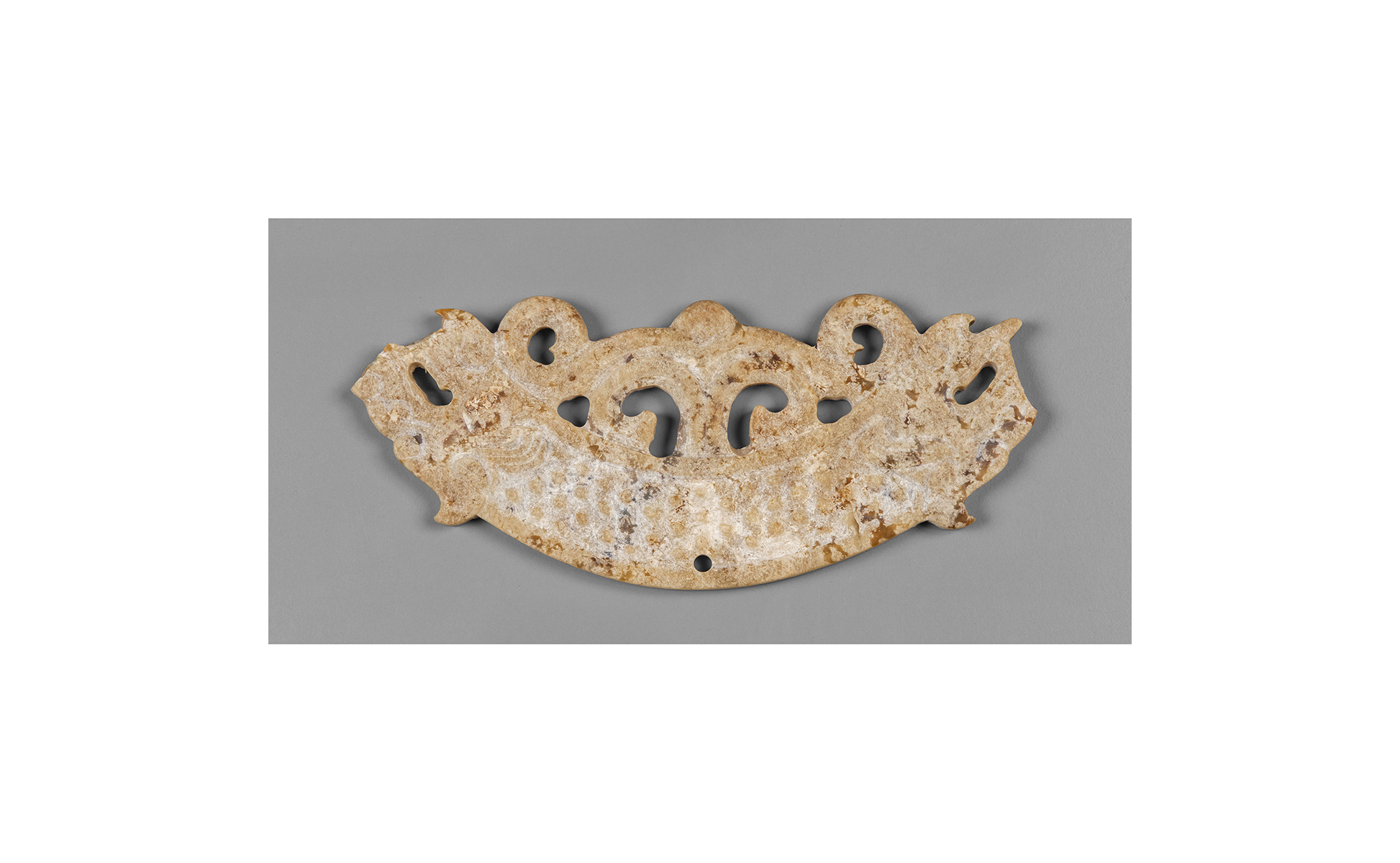 Placca rituale in giada intagliata a motivo di teste di tigri Cina