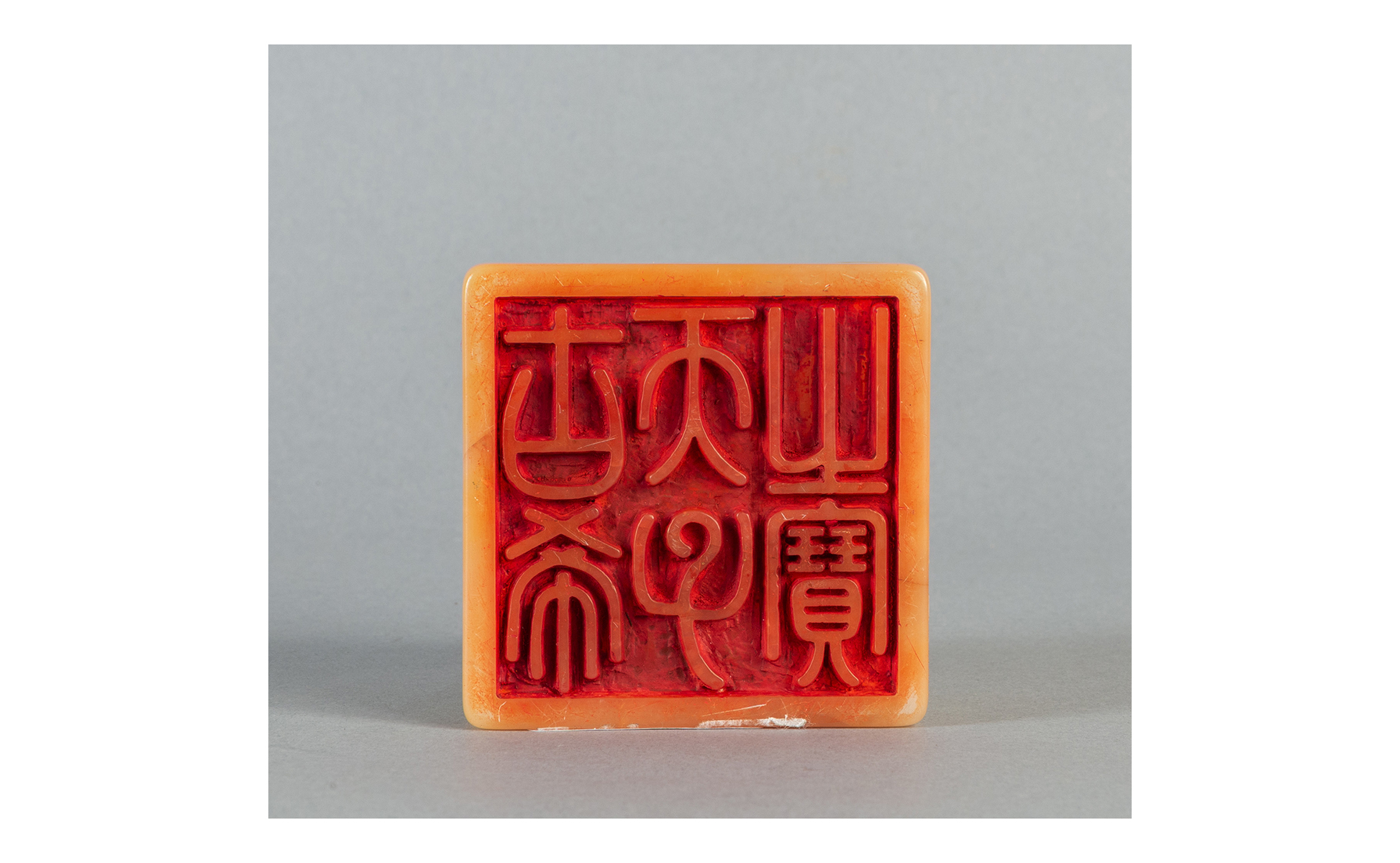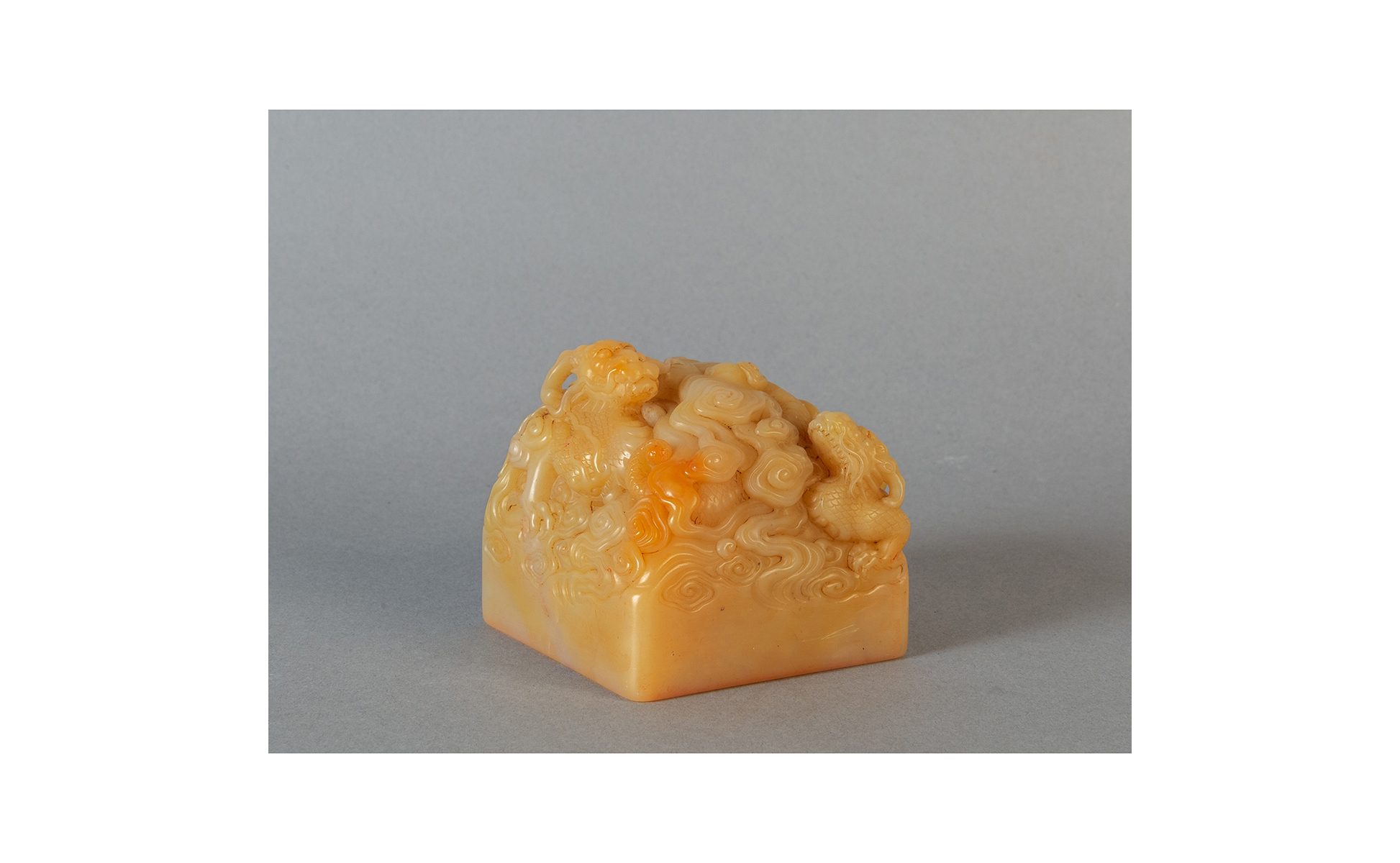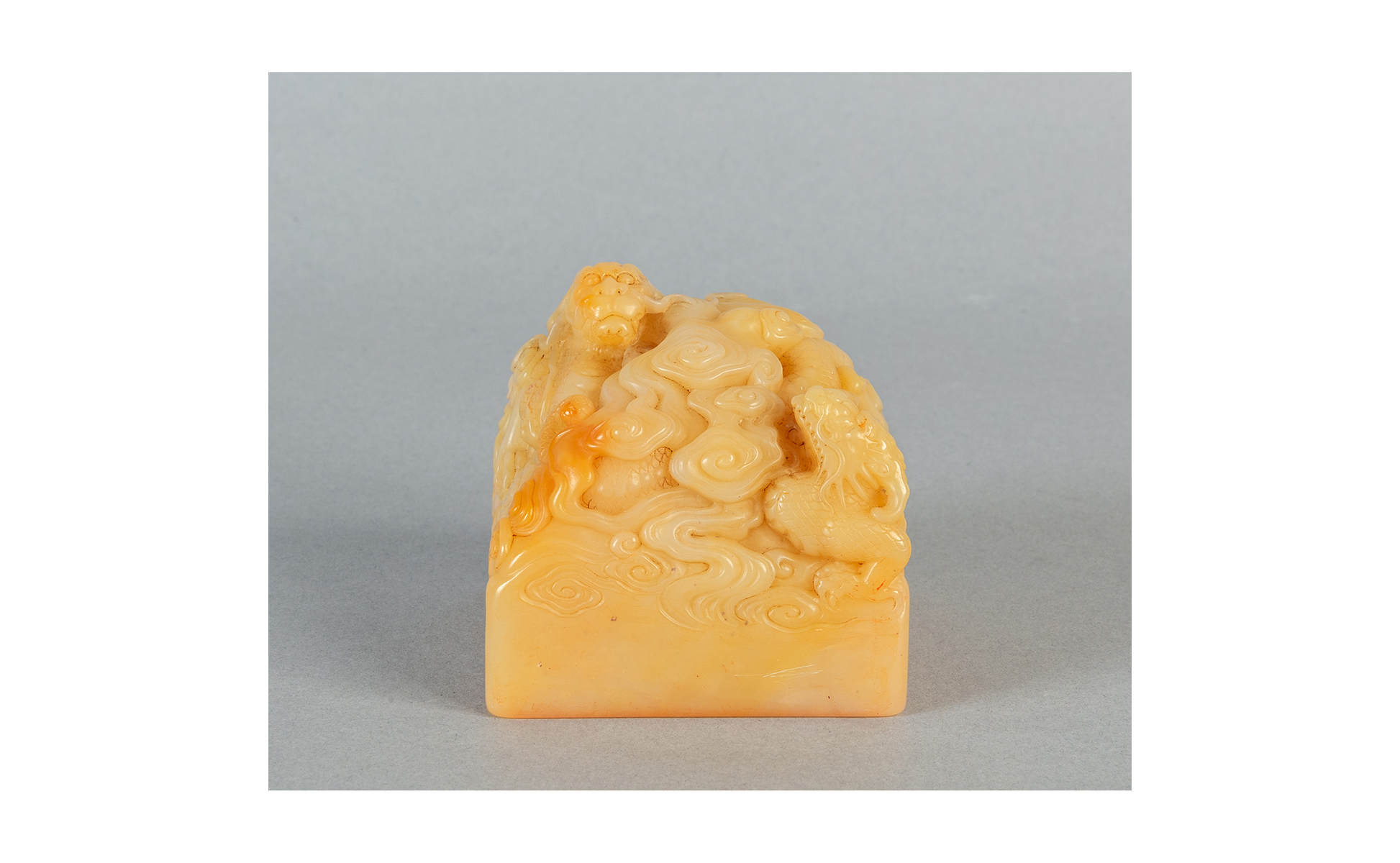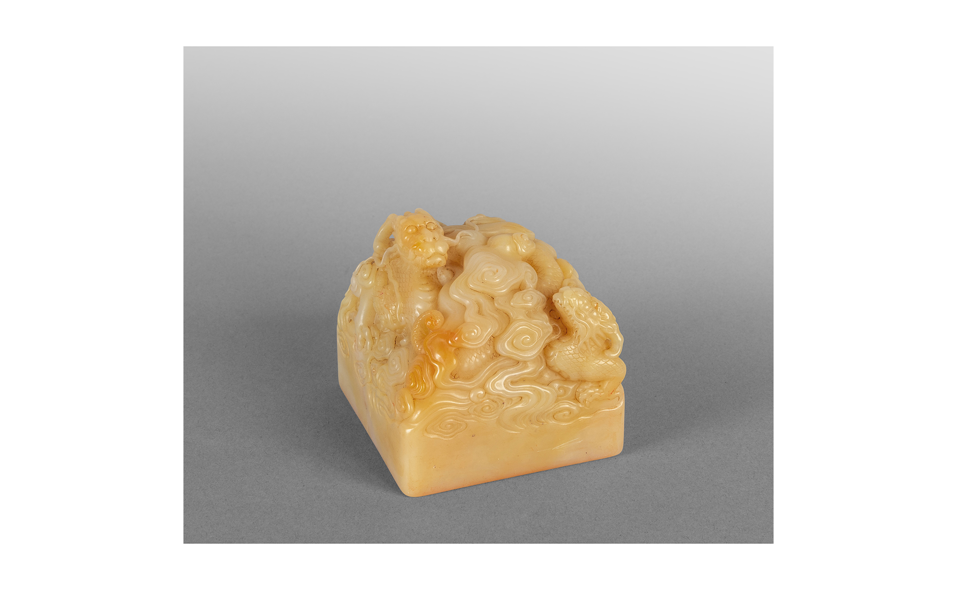 Sigillo in saponaria scolpita a motivi di draghi e nuvole Cina sec.XIX