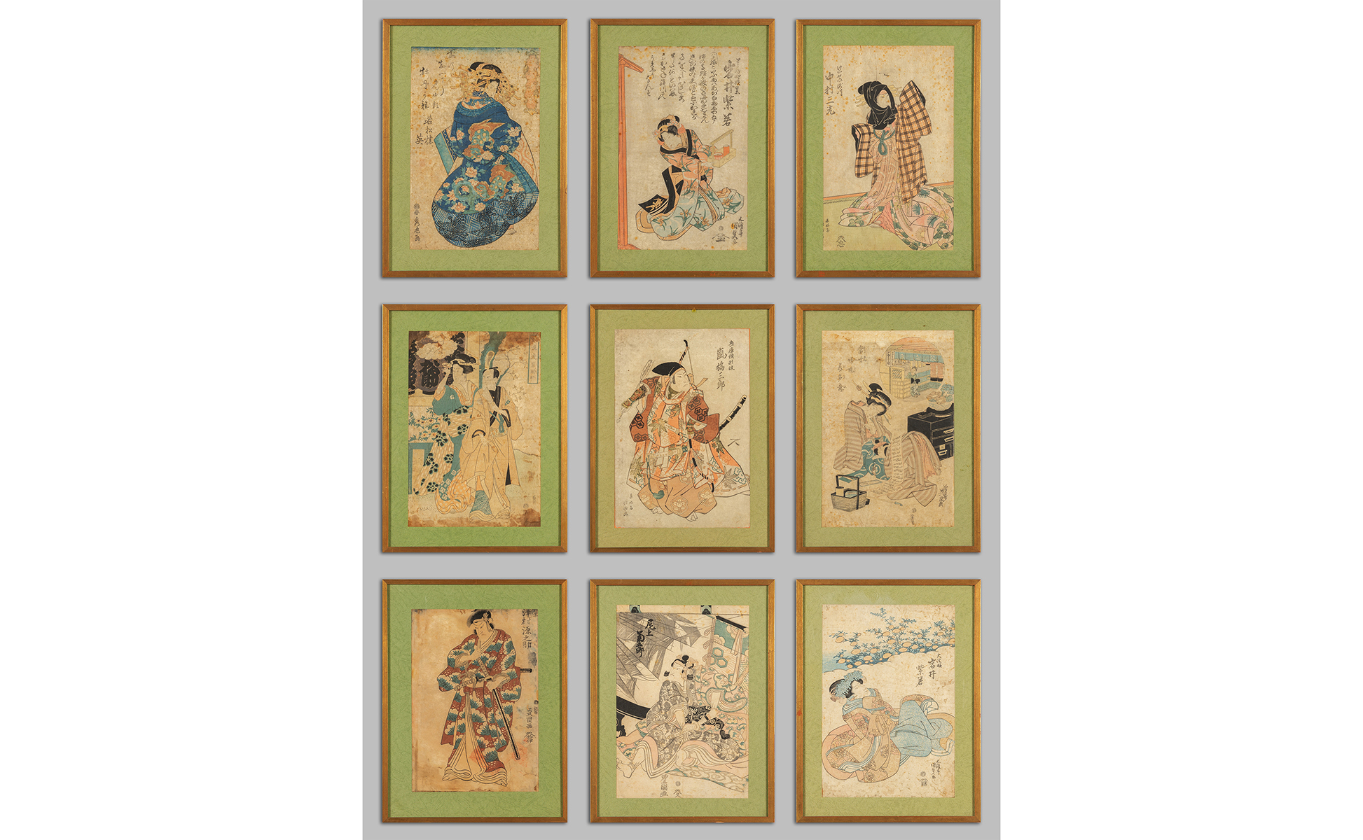 Nove incisioni raffiguranti personaggi orientali di varie misure sec.XIX