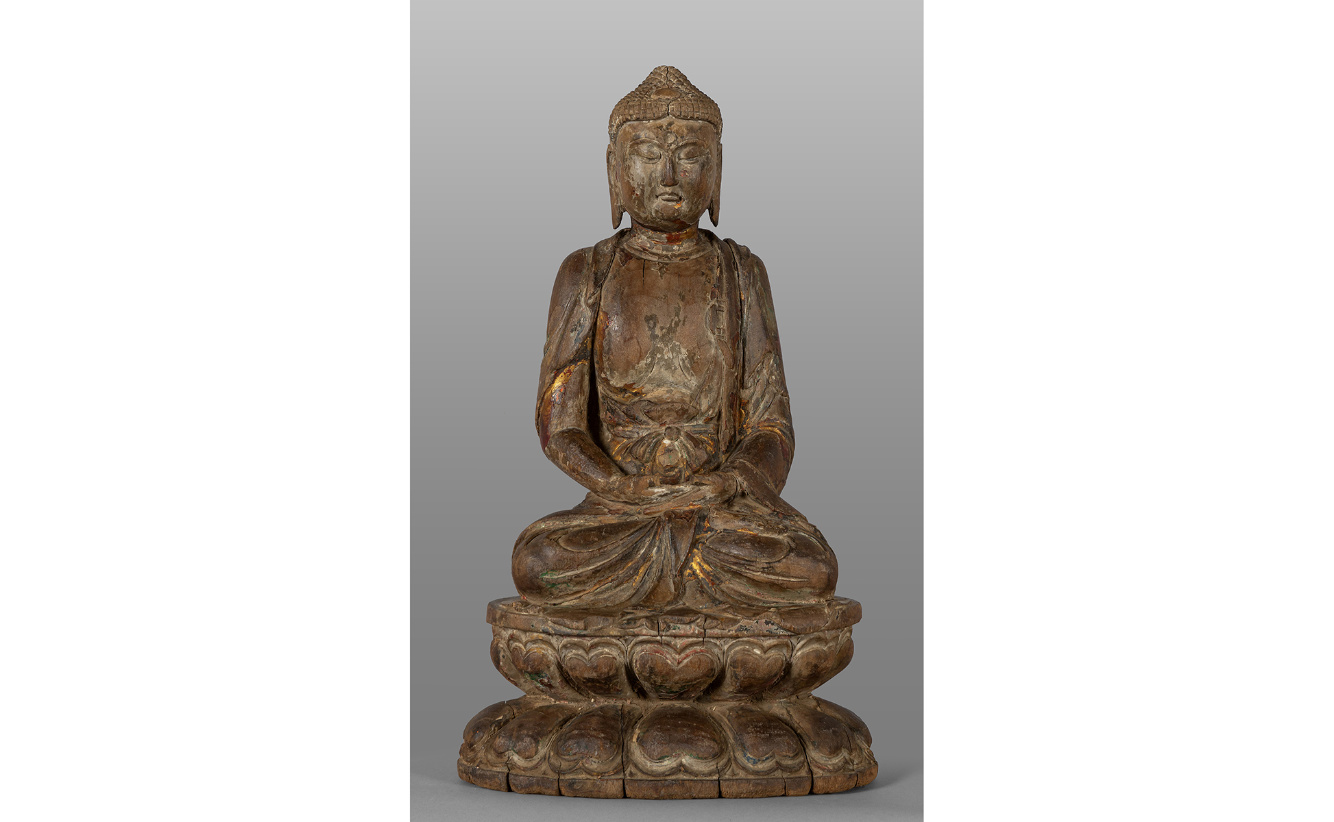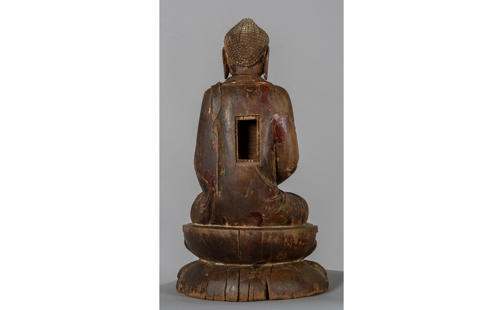 Buddha in legno intagliato con tracce di doratura Cina dinastia Yuan sec.XV