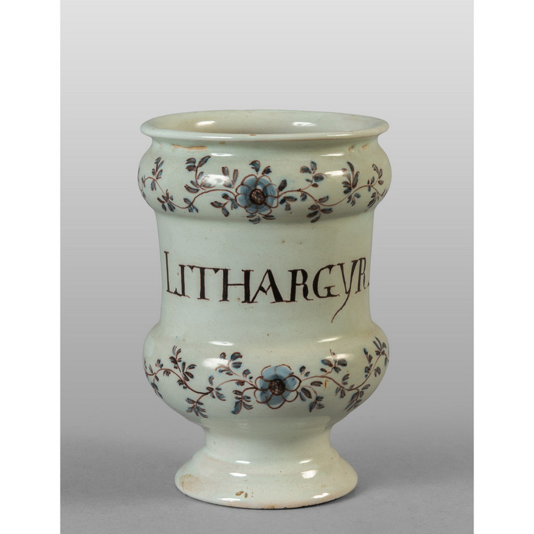 Albarello in ceramica decorato a fiori in policromia Italia centrale sec.XVIII