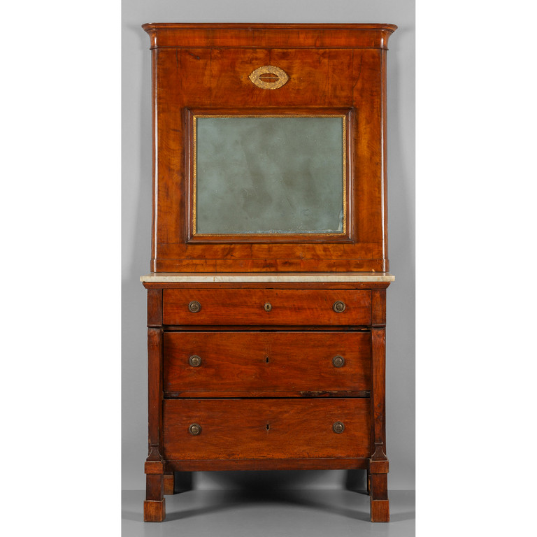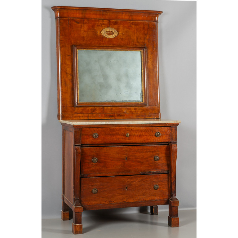 Comò Impero a due cassetti più uno piano in marmo sec.XIX (cm.97x53xh.93) e specchiera in mogano sec.XIX (cm.120xh.134)