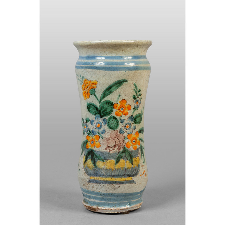Albarello in ceramica decorato in policromia con fiori Italia Meridionale sec.XVIII