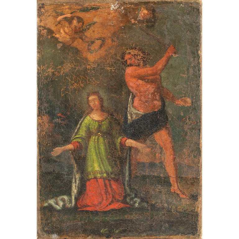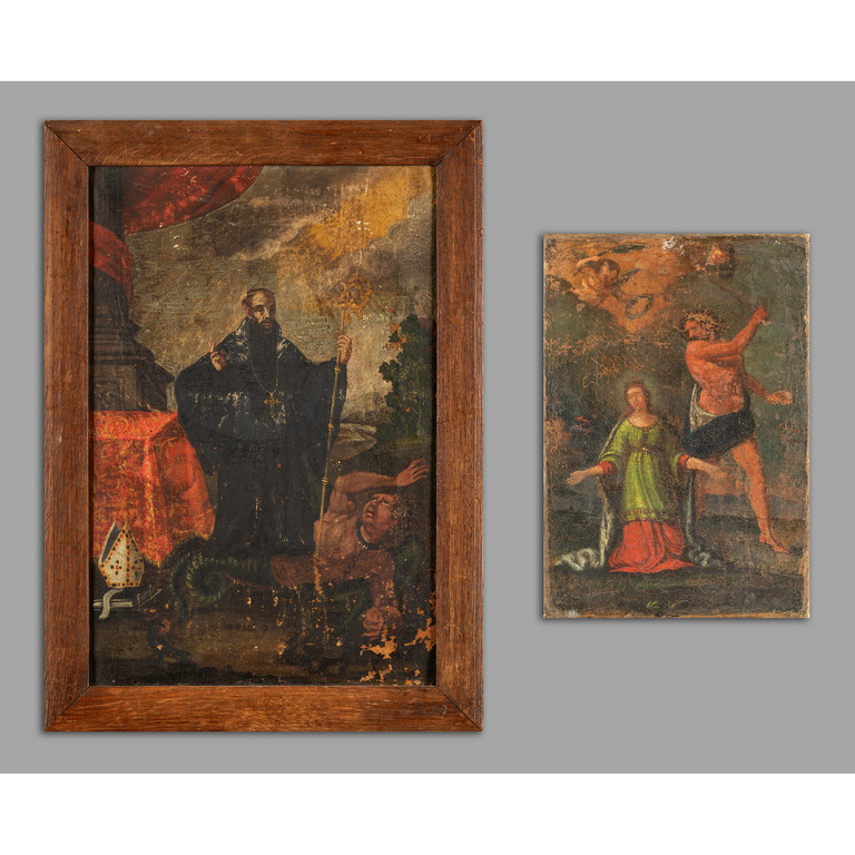'Flagellazione' olio sec.XVIII (cm.22x33) e 'Santo' olio sec.XVIII (cm.29x44)