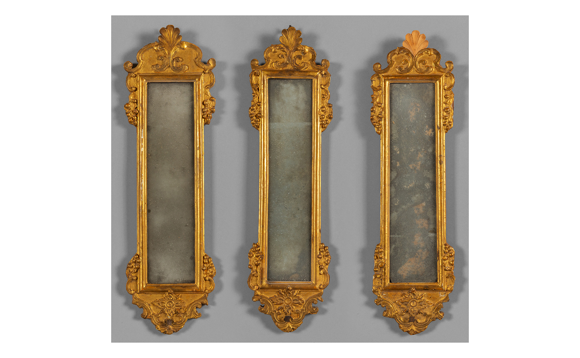 Tre specchierine Luigi XIV in legno intagliato e dorato sec.XVIII