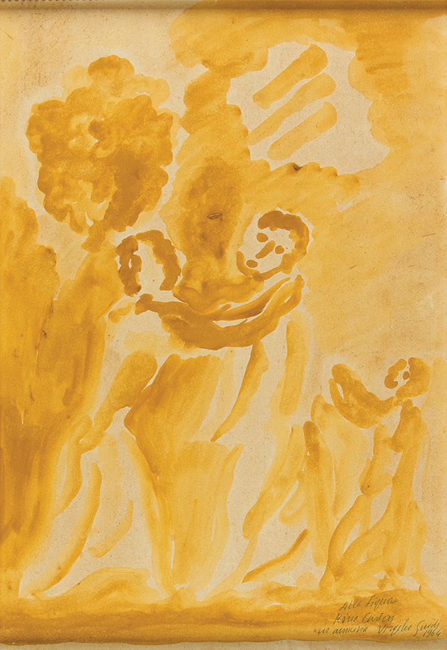 VIRGILIO GUIDI Roma 1891-Venezia 1984 Figure, 1964 Acquerello monocromo su carta, cm 55 x 35 Firma, data e dedica in basso a destra