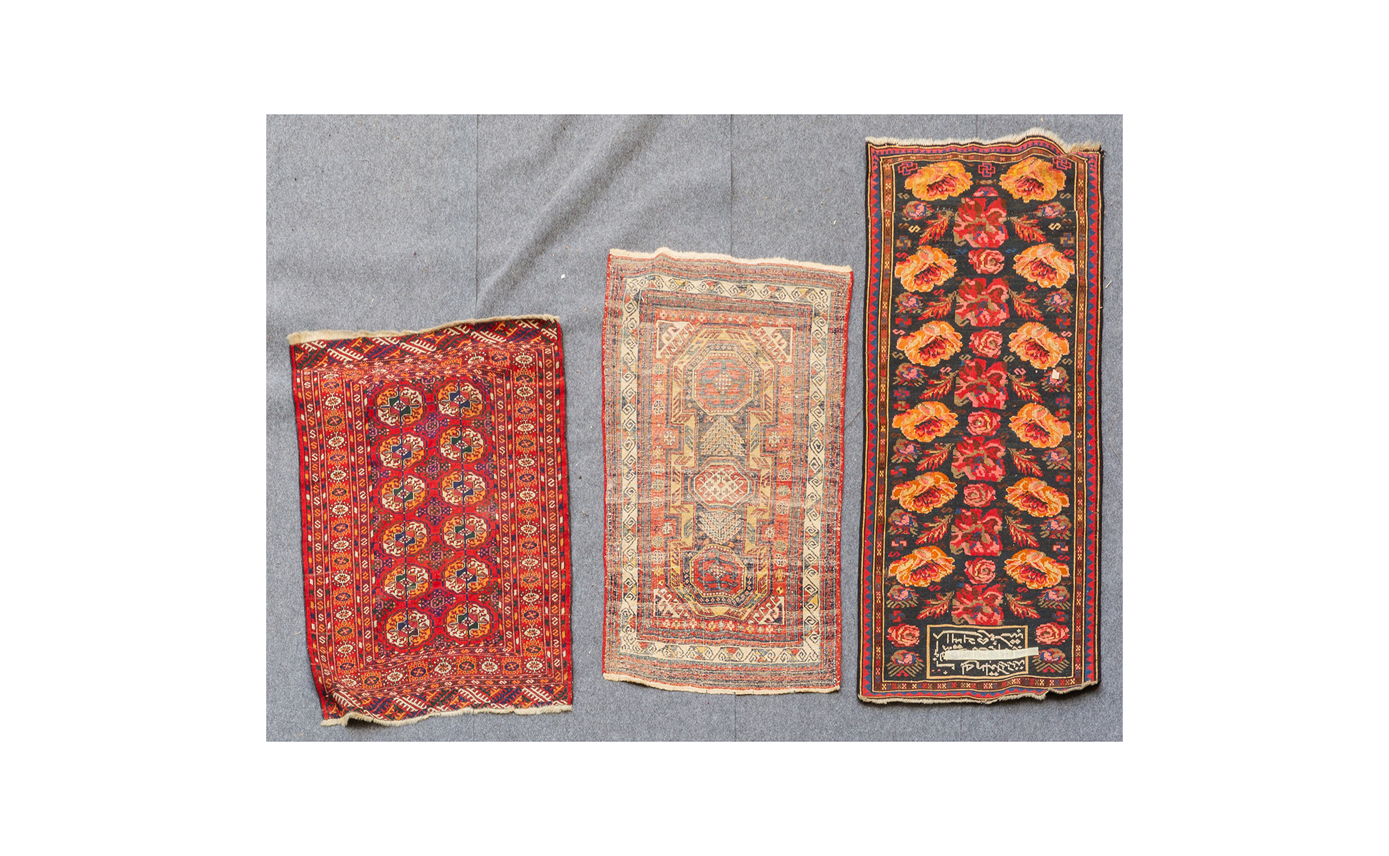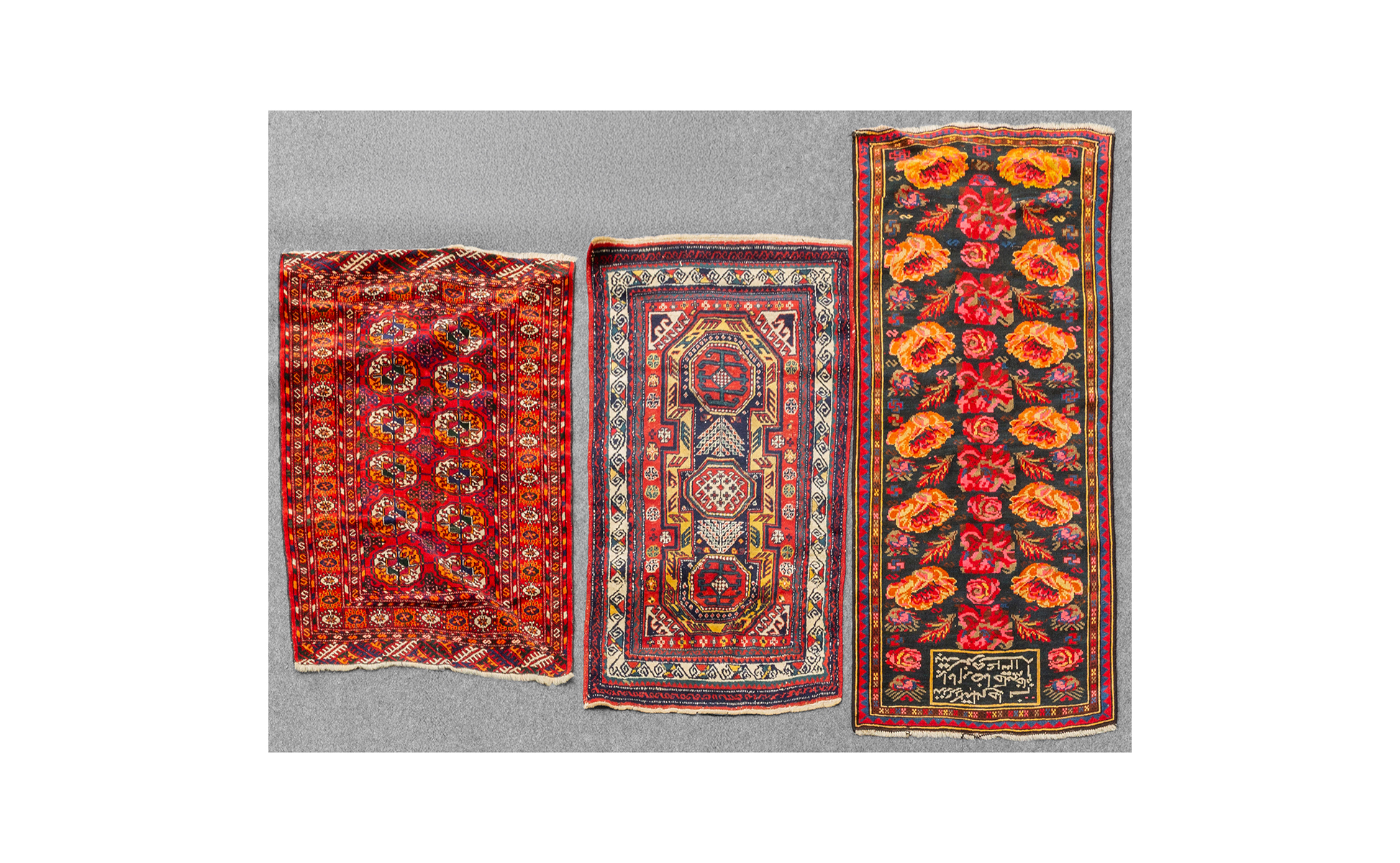 Previous Lot 0933 Next Aste Boetto - Via Mura dello Zerbino 10R, 16122 Genova ASTA DI ANTIQUARIATO Asta di Antiquariato Wednesday 18 June 2025 hours 15:00 (UTC +01:00) TAPPETO Lotto di tre tappeticm.77x116 86x106 76x154