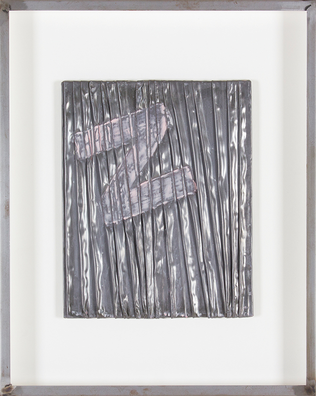 UMBERTO MARIANI Milano 1936 La forma celata Z, 1994 Acrilico su piombo modellato applicato su tavola, cm 40 x 30 Firma e data al retro Autentica su foto dell’Artista