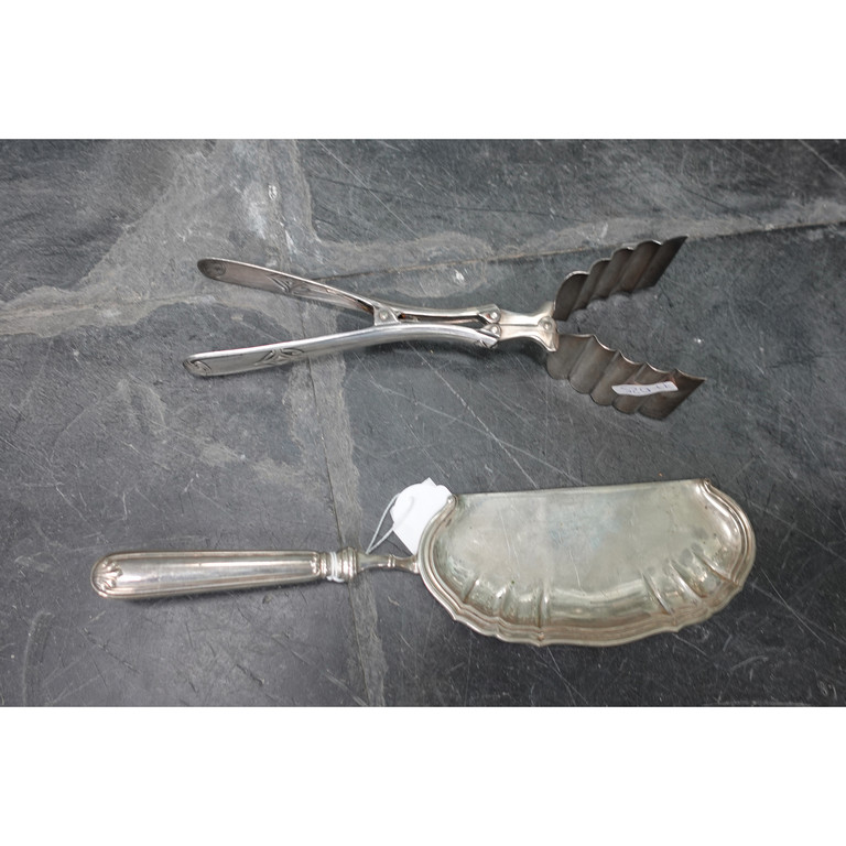 Paletta raccoglibriciole in argento e pinza per asparagi in metallo argentato