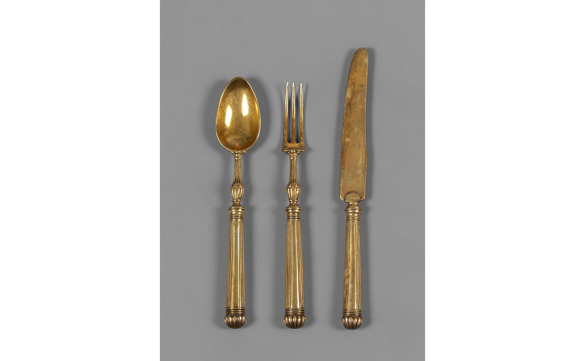 Servizio di posate da frutta in vermeille composto da 18 forchette 18 coltelli e 18 cucchiai Francia sec.XIX