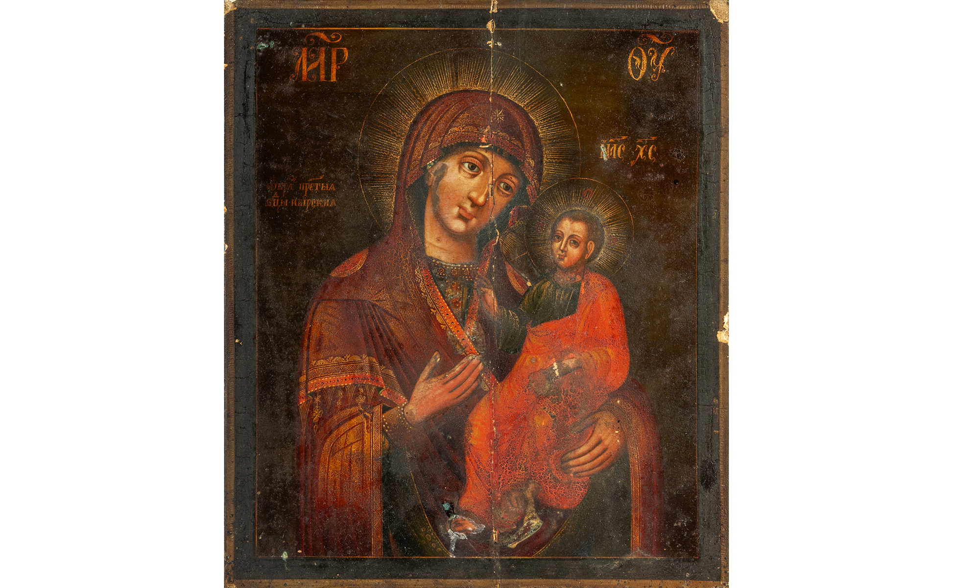 'Madonna di Odigitria' icona tempera su tavola con riza in vermeille Russia sec.XIX