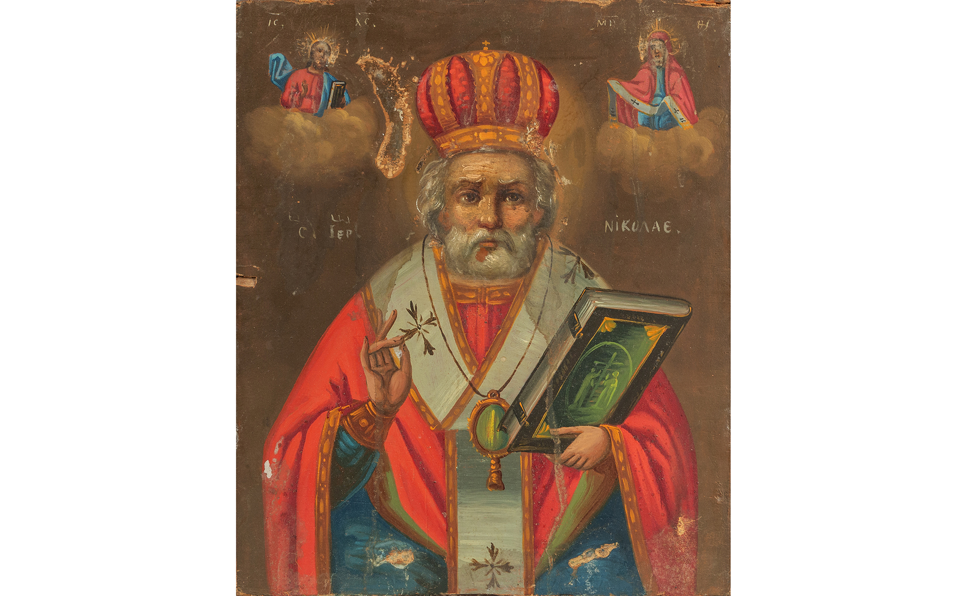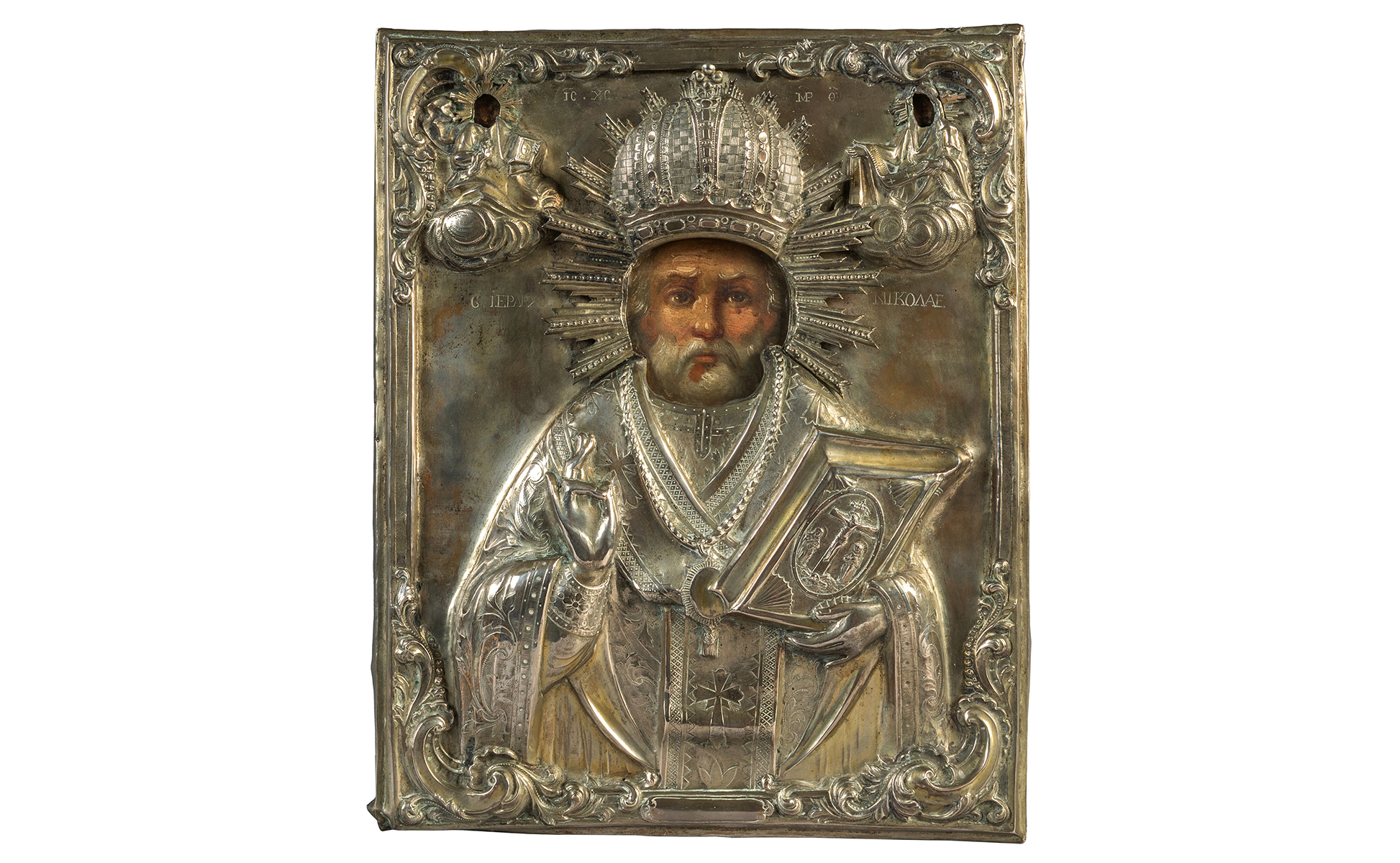 'San Nicola' icona tempera su tavola con riza Russia sec.XIX