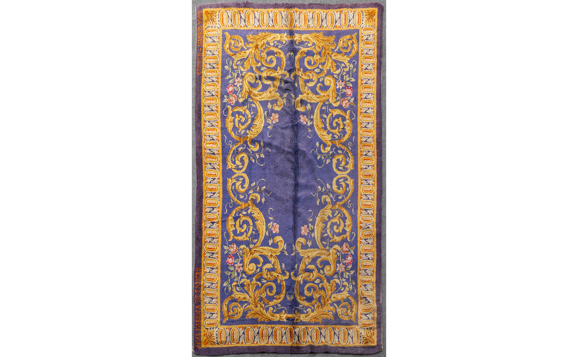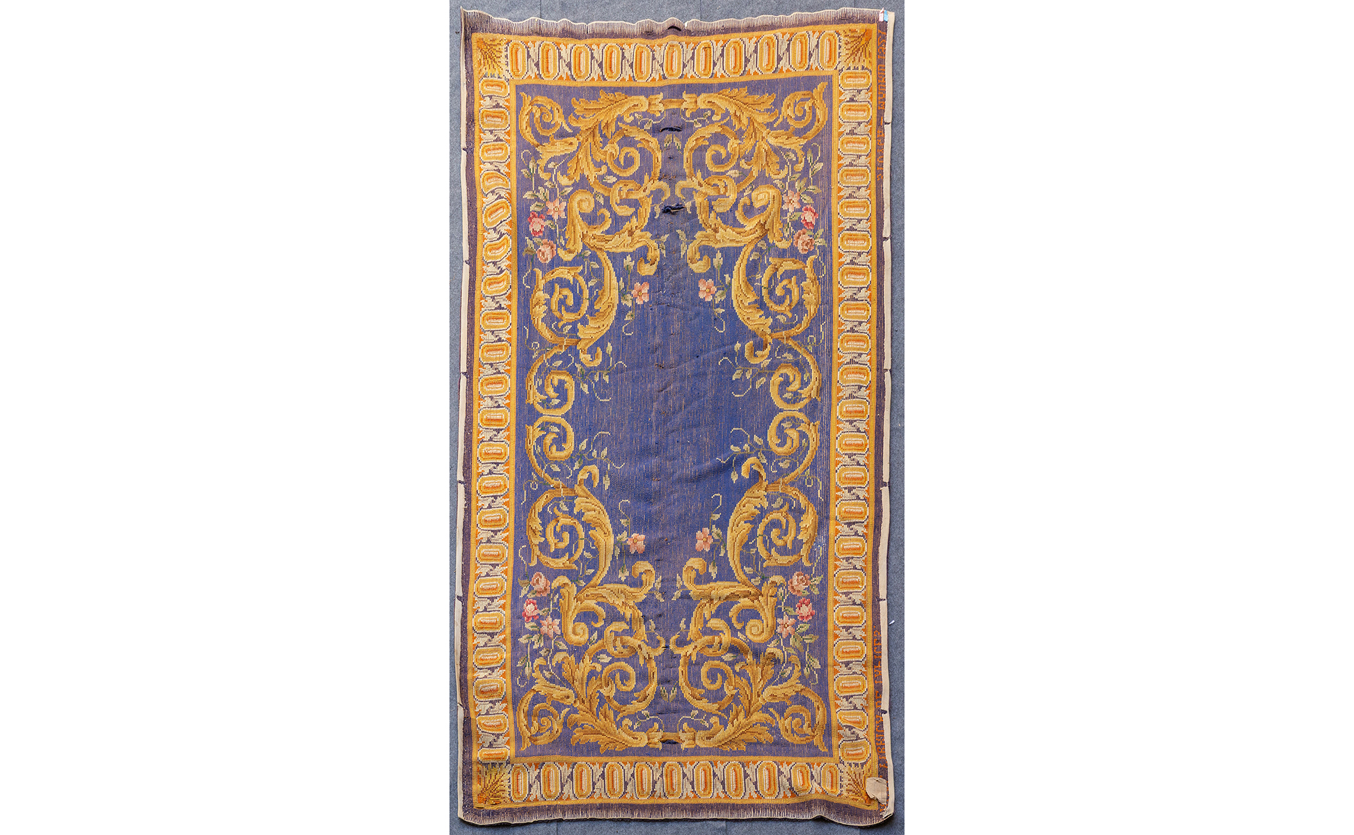 Previous Lot 1043 Next Aste Boetto - Via Mura dello Zerbino 10R, 16122 Genova ASTA DI ANTIQUARIATO Asta di Antiquariato Wednesday 18 June 2025 hours 15:00 (UTC +01:00) TAPPETO Tappeto a fondo azzurro manifattura francese sec.XX cm. 422x230 difetti