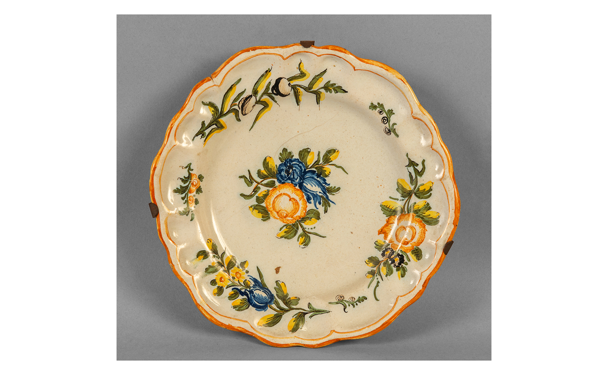 Piatto in ceramica decorazione con fiori policromi su fondo bianco Savona sec.XVIII