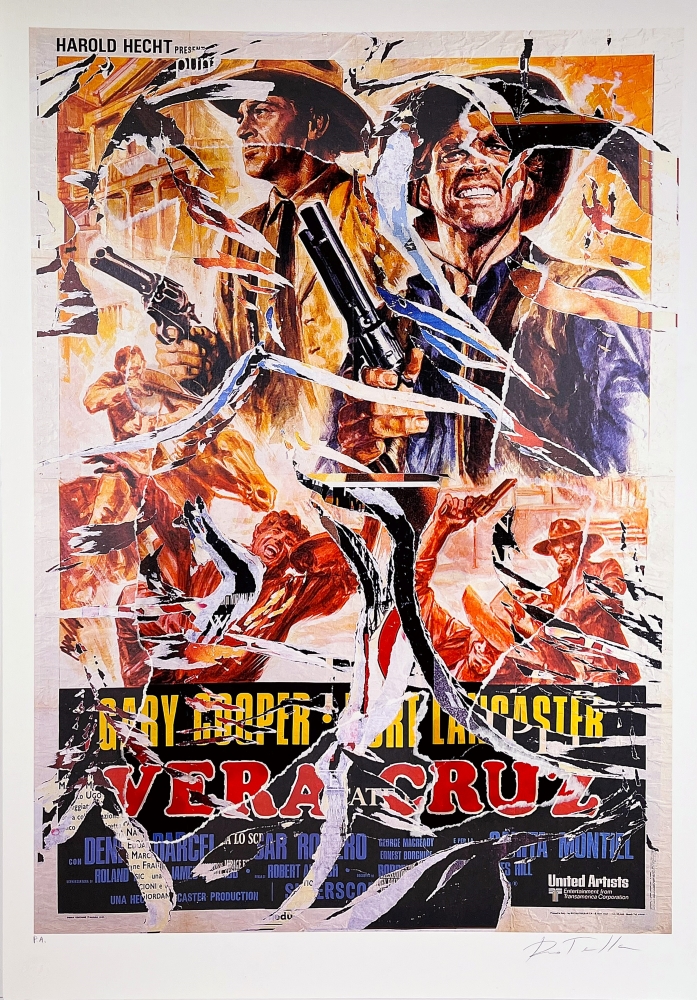 ROTELLA MIMMO Catanzaro 1918 - Milano 2006 "Vera Cruz" Multiplo decollage con strappi di manifesto applicati su cartoncino cm 70x100. Firmato sul fronte in basso a destra, tiratura P.A. e timbro a secco "Fondazione Rotella" a sinistra.