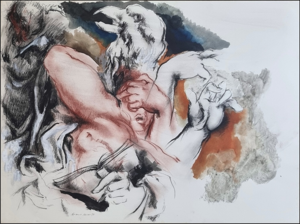 MURER FRANCO Falcade 1952 "Senza titolo" Tecnica mista su cartoncino cm 56,5x76 del 1981. Firmata e datata sul fronte in basso a sinistra.
