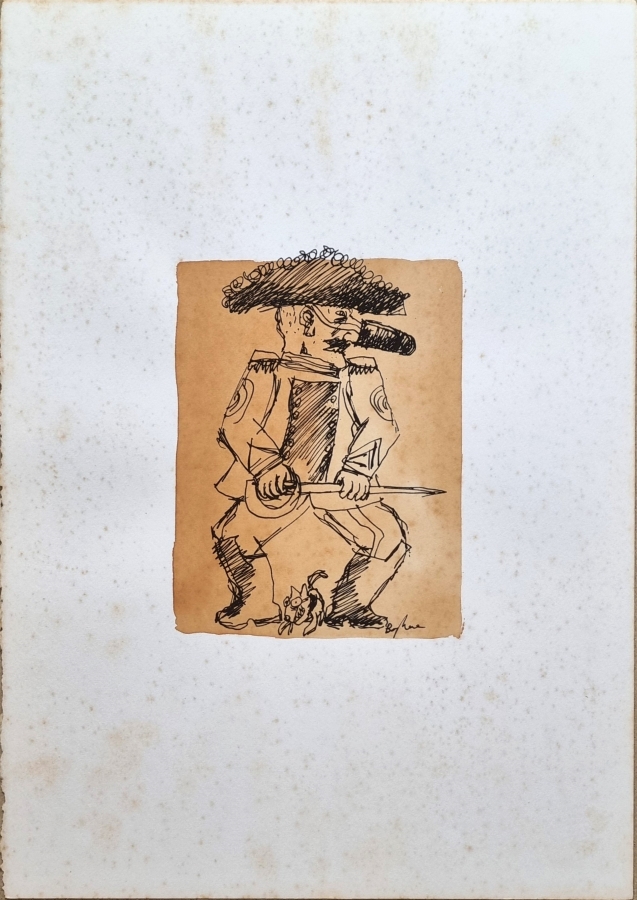 BORGHESE FRANZ Roma 1941 - 2005 "La guerra chimica" Acquerello e tecnica mista su carta cm 35x50. Firmato sul fronte in basso a destra, al verso tecnica, titolo e misure. Provenienza Studio Borghese. (Presenta fioriture).