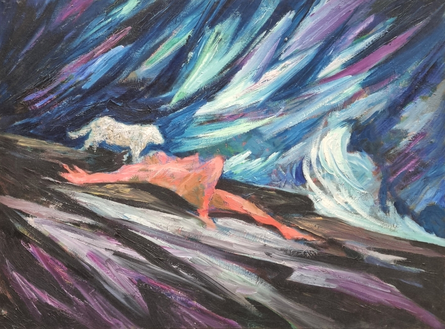 CASTAGNERI LUCIO Genova 1947 "Senza titolo" Olio su tela cm 50x36 del 1984. Firmato e datato al verso.