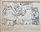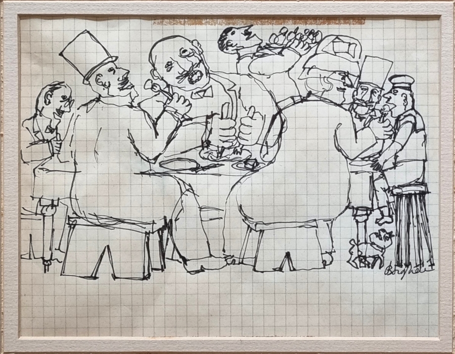 BORGHESE FRANZ Roma 1941 - 2005 "Il banchetto" Penna su foglio di carta a quadretti cm 19x15. Firmata sul fronte in basso a destra. Opera esposta nella mostra personale "Il diario egocentrico". Copia della pubblicazione al retro. Provenienza Studio Borghese.