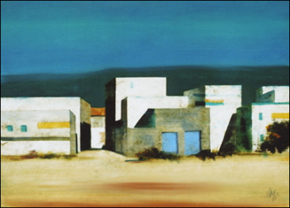 MAGAZZINI SALVATORE Pistoia 1955 "Tizwit" Olio su tavola cm 70x50. Firmato sul fronte in basso a destra. Sul retro titolo, tecnica, misure e firma. Autentica su foto a cura del Maestro.