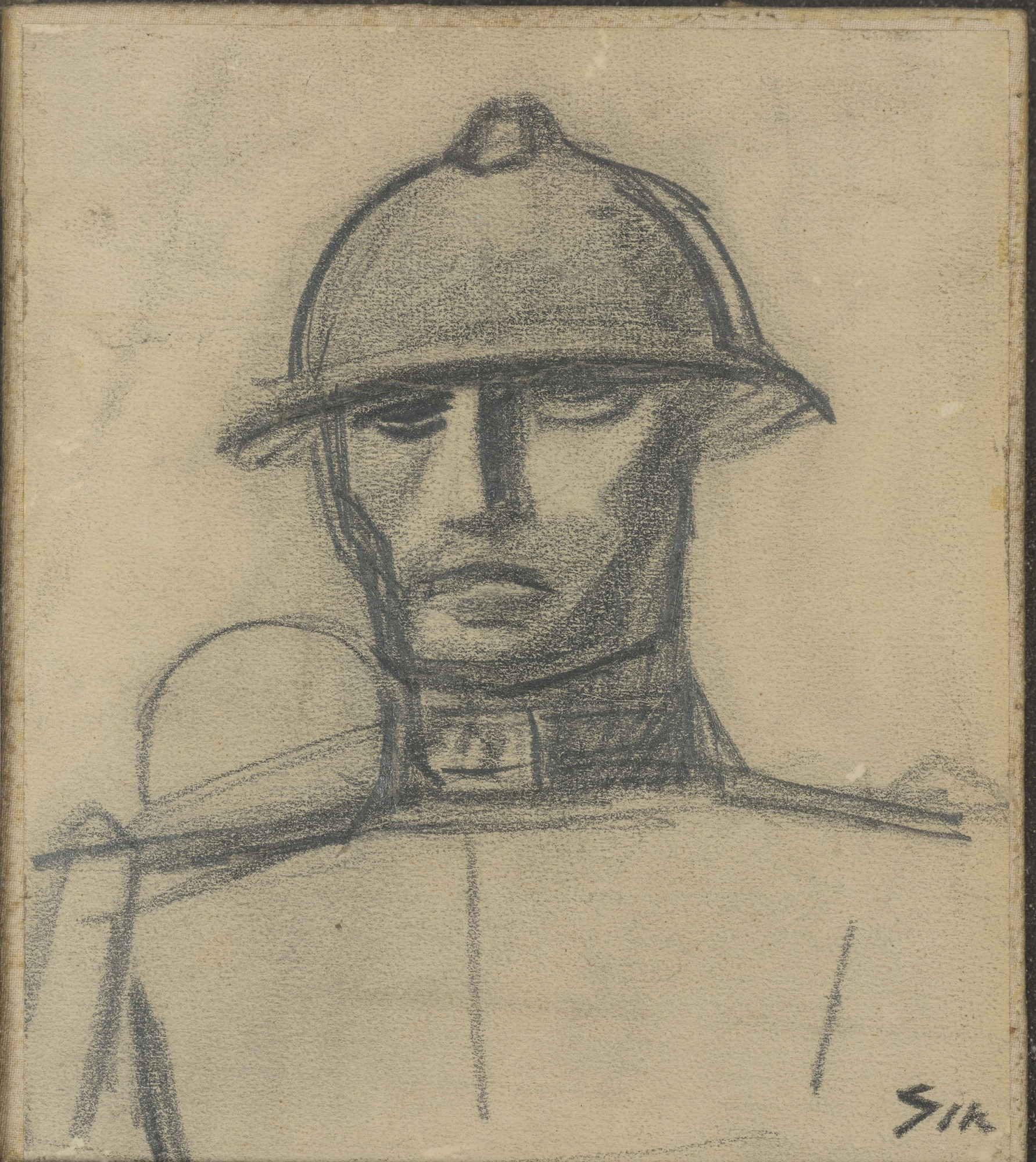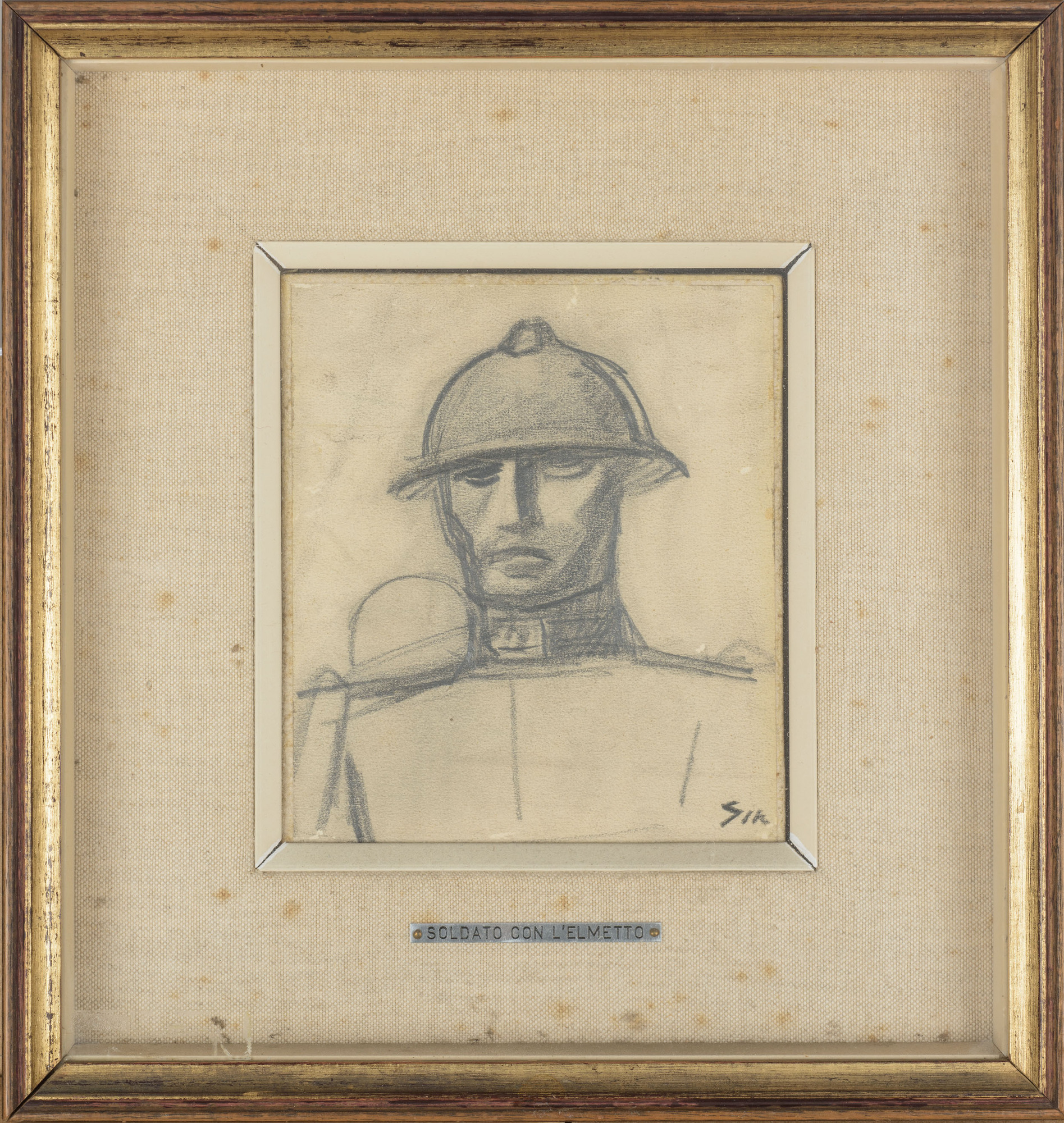 Busto soldato con elmetto - probabile studio per illustrazione, 1920 circa