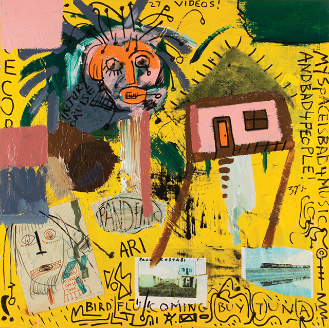 PAUL KOSTABI California 1962 Senza titolo Tecnica mista e collage su tela, cm 101 x 101 Firma al retro Esposizioni Galleria L’acquario, Giulianova, 2010 Fotografia dell’esposizione con la presenza dell’artista