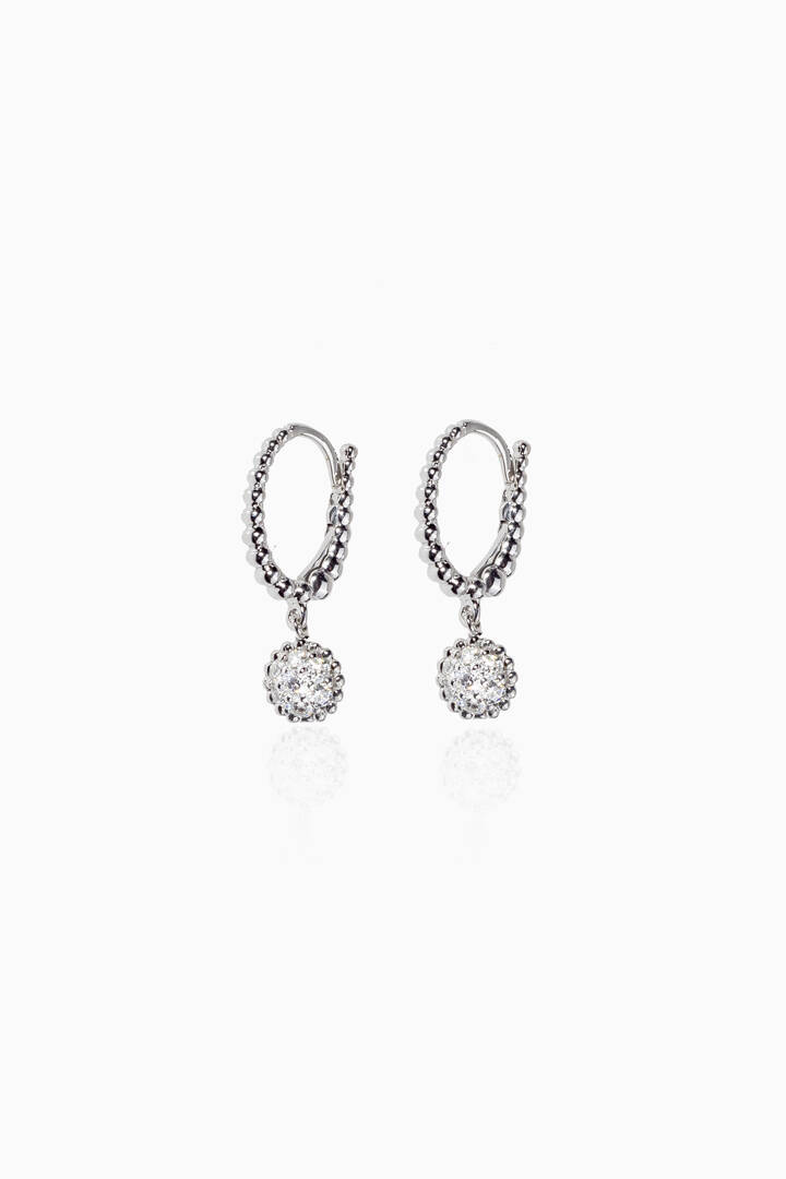 in oro bianco, a monachella, con semisfere in pavé di diamanti taglio brillante per totali ct 0,39 ca, probabile colore G-H, purezza IF-VVS