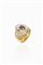 in oro giallo e bianco, sommità ad intreccio con pavé di diamanti taglio brillante per totali ct 2,0 ca, probabile colore G-H, purezza VS; al centro rubino taglio ovale di ct 0.90 ca