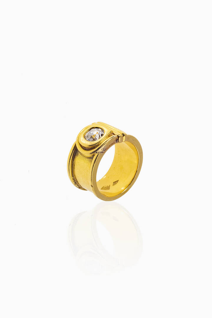 in oro giallo, a fascia, con diamante taglio brillante di vecchio di ct 0,70 ca