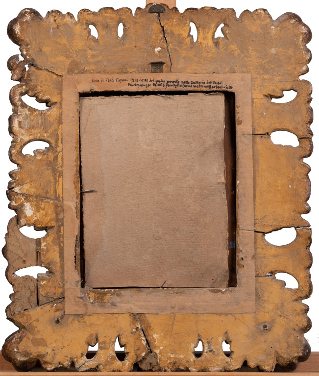 La composizione di questa Madonna col Bambino riprende le fortunate invenzioni di Carlo Cignani, grande pittore bolognese attivo tra la seconda metà del XVII secolo e i primi decenni del XVIII secolo. Il dipinto - in ottimo stato di conservazione, piacevole soggetto e fine qualità - è inoltre arricchito da una pregiata e antica cornice bolognese in legno dorato.