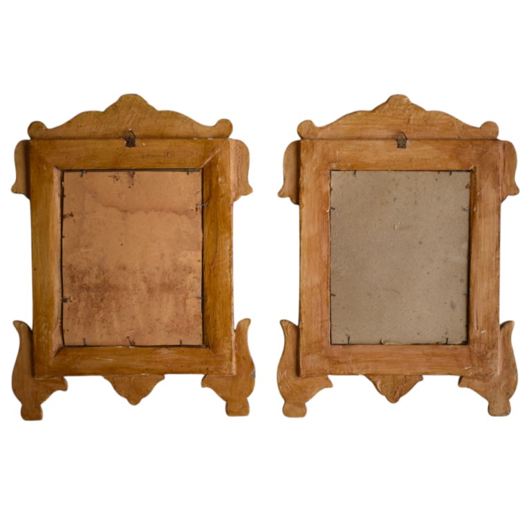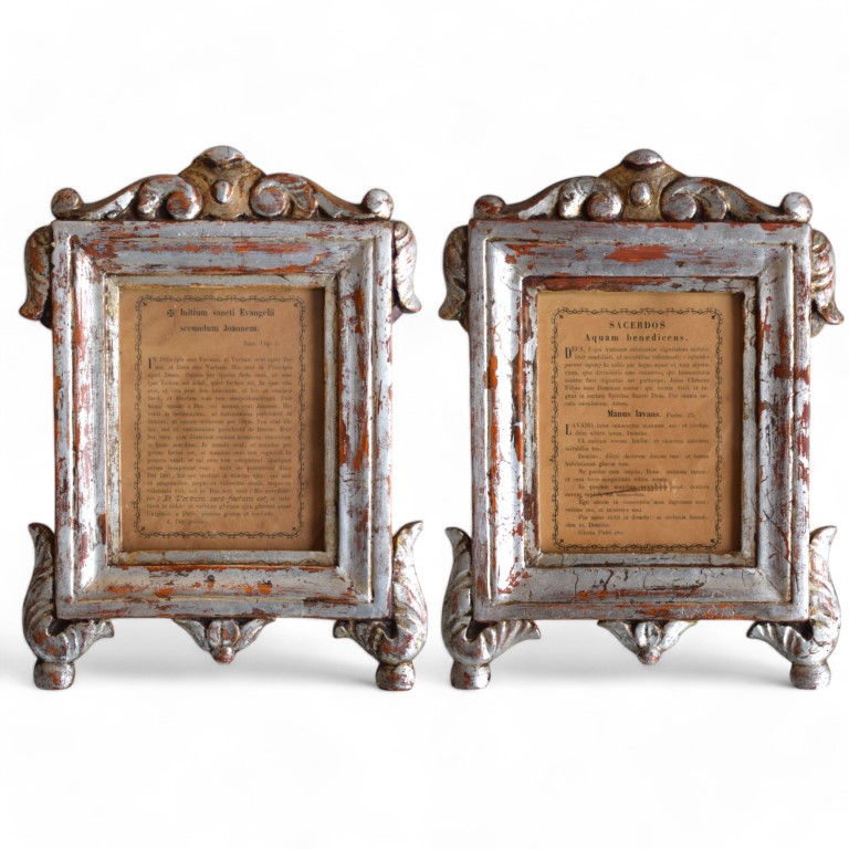 Coppia di cartagloria in legno intagliato e argentato