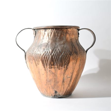 Lot 123 | Vaso biansato in rame sbalzato a motivi fitomorfi stilizzati XIX secolo H cm 27