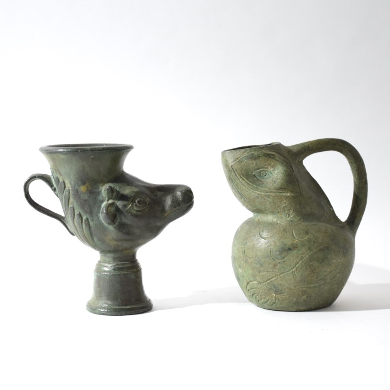 Oinochoe e rython in bronzo Fine del XIX secolo Modellati rispettivamente a...
