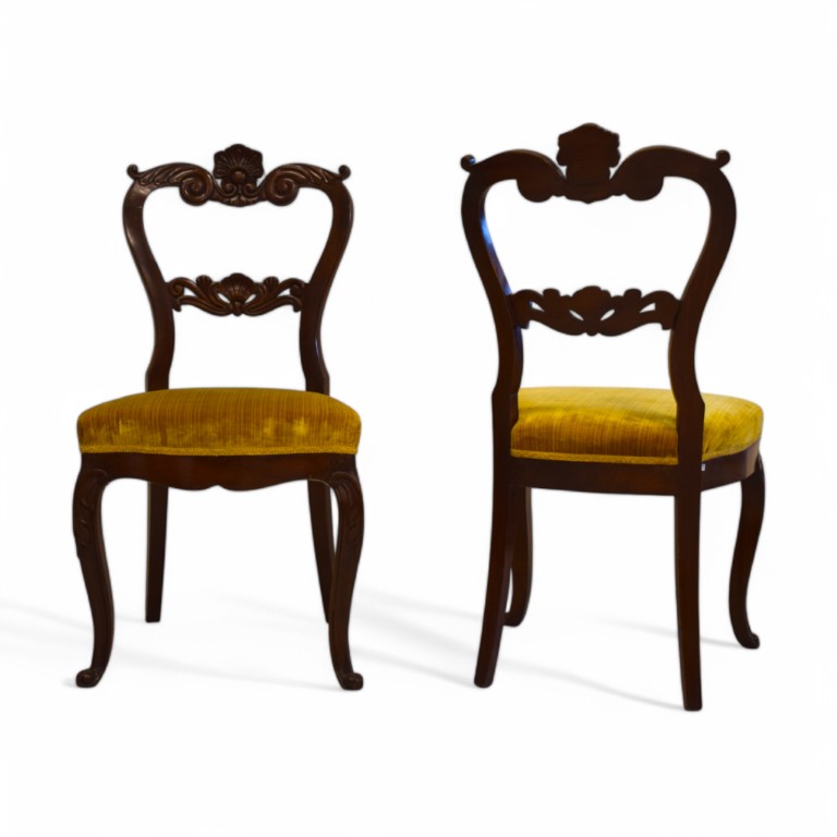 Sei sedie in mogano intagliato