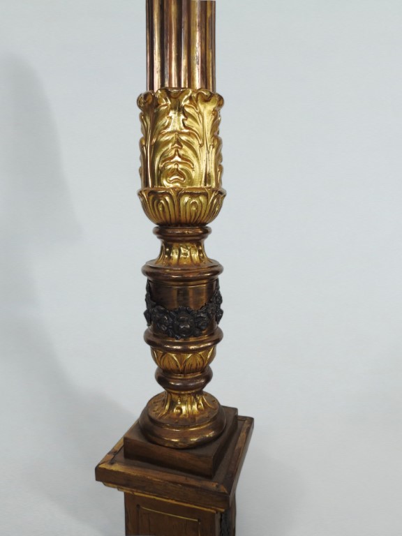 piano superiore quadrato, capitello corinzio, fusto scannellato con foglie di acanto in rilievo