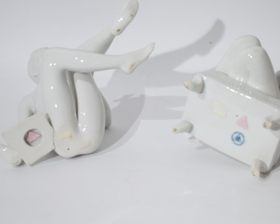 Due statuette di fanciulle in porcellana bianca, Manifattura Royal Dux