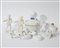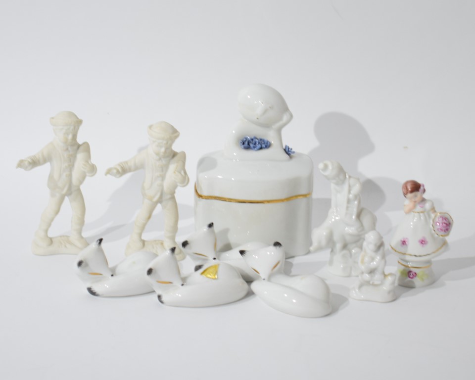 Composto da cinque statuette di animali, quattro di bambini ed una scatola con coperchio in porcellana.