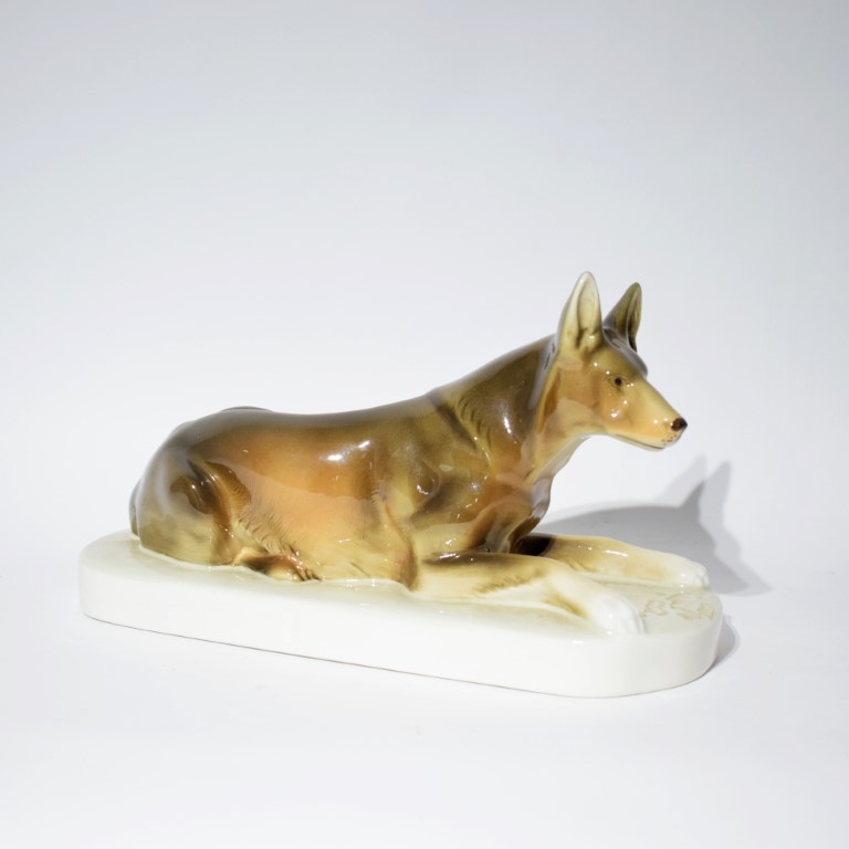 Grande statuetta di pastore tedesco in porcellana, Manifattura Royal Dux
