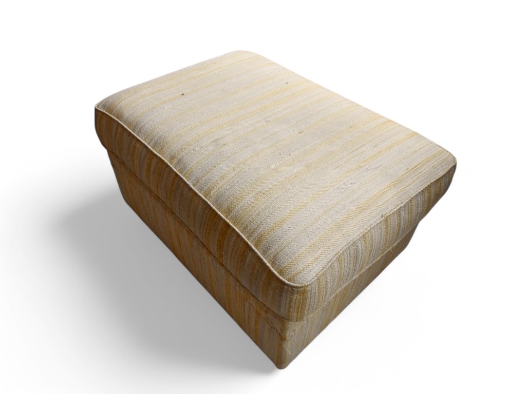 Pouf vintage ricoperto in filaticcio giallo a righe