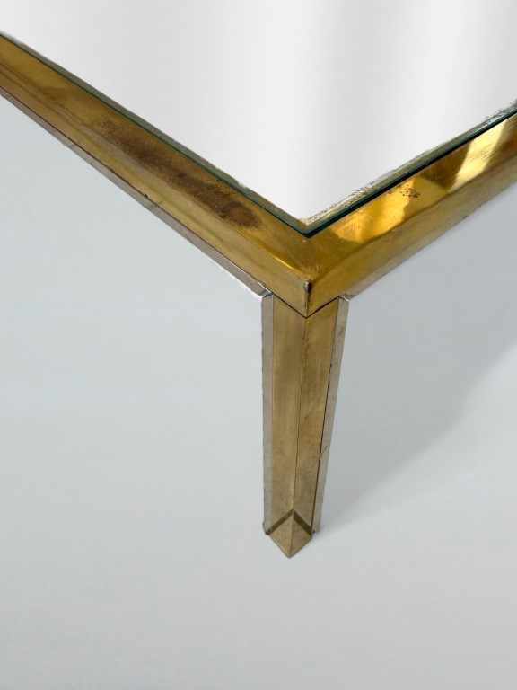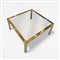 Tavolo basso da salotto in ottone dorato, acciaio e vetro