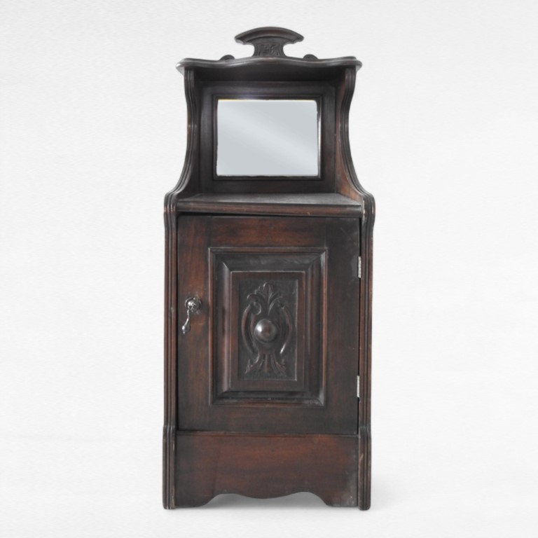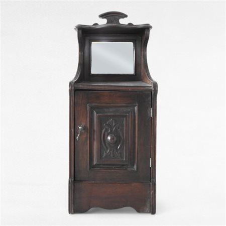 Comodino con alzata a specchio in legno dolce tinto a noce