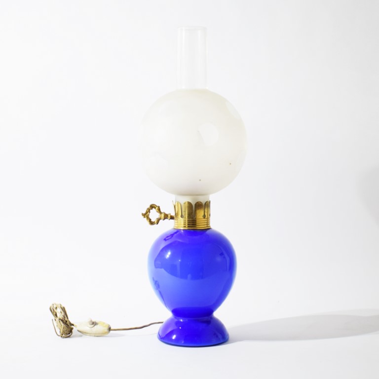 Lume globulare da tavolo in vetro blu