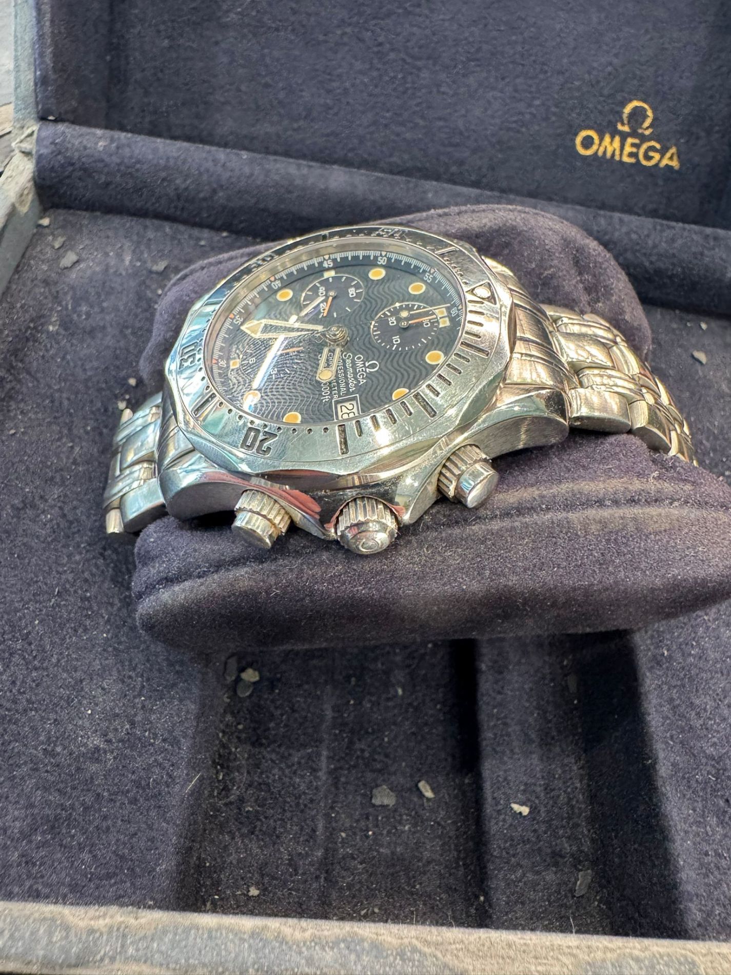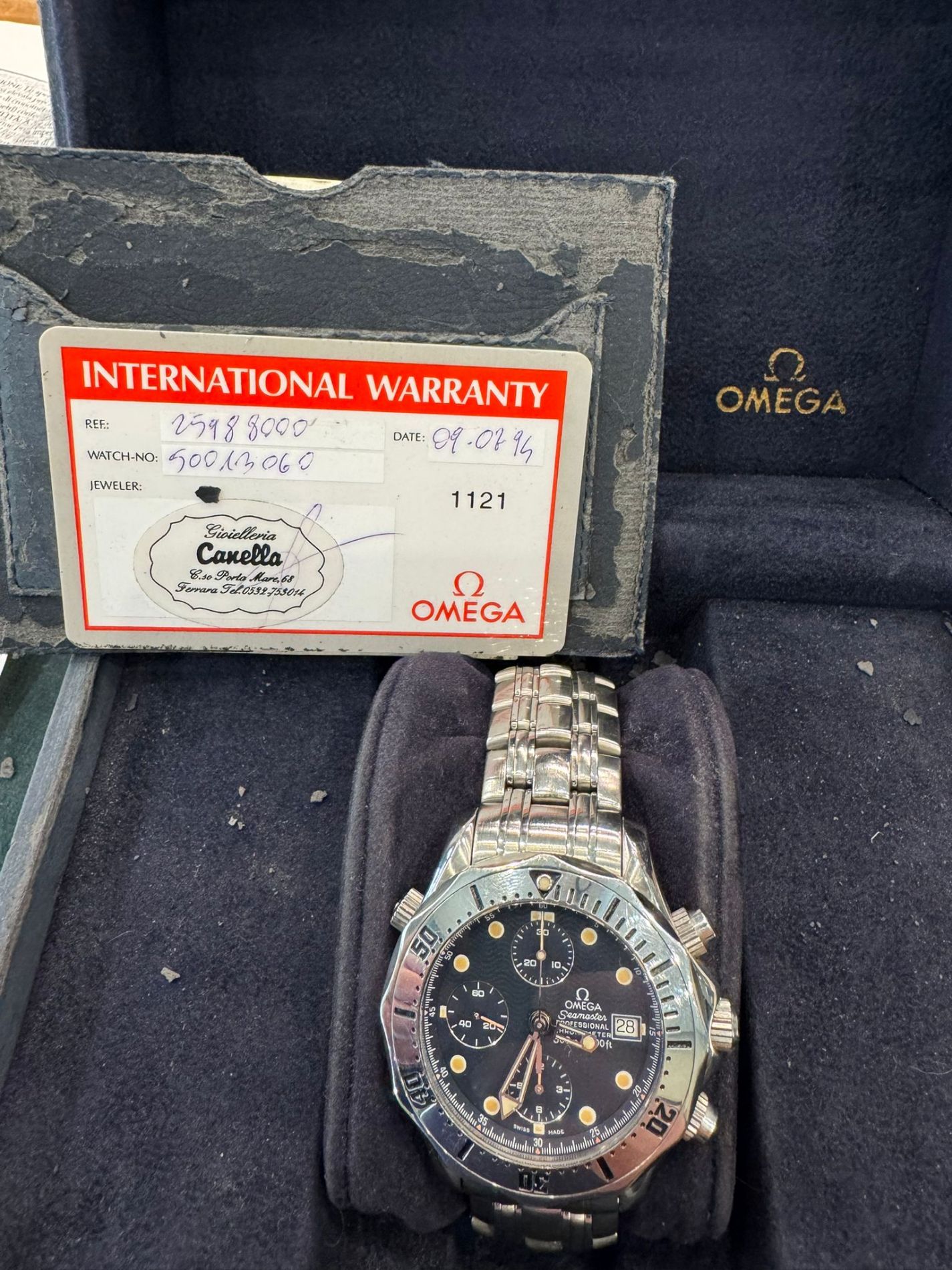 BRAND OMEGA MODEL (WATCH) SEAMASTER DIVER 300 M REFERENCE NUMBER 2598.80 MOVEMENT AUTOMATIC CASE MATERIAL STEEL STRAP MATERIAL STEEL YEAR OF PRODUCTION 1994 (APPROXIMATE YEAR) CONDITION USED (GOOD) THE ITEM SHOWS SIGNS OF WEAR THAT CAN BE SEEN AND FELT, SUCH AS SCRATCHES, NICKS OR SMALL DENTS. ACCESSORIES WITH ORIGINAL BOX AND ORIGINAL DOCUMENTS MOVEMENT AUTOMATIC CASE CASE MATERIAL STEEL DIAMETER 41 MM STRAP STRAP MATERIAL STEEL STRAP COLOR STEEL - AUCTION COMMISSION 25%