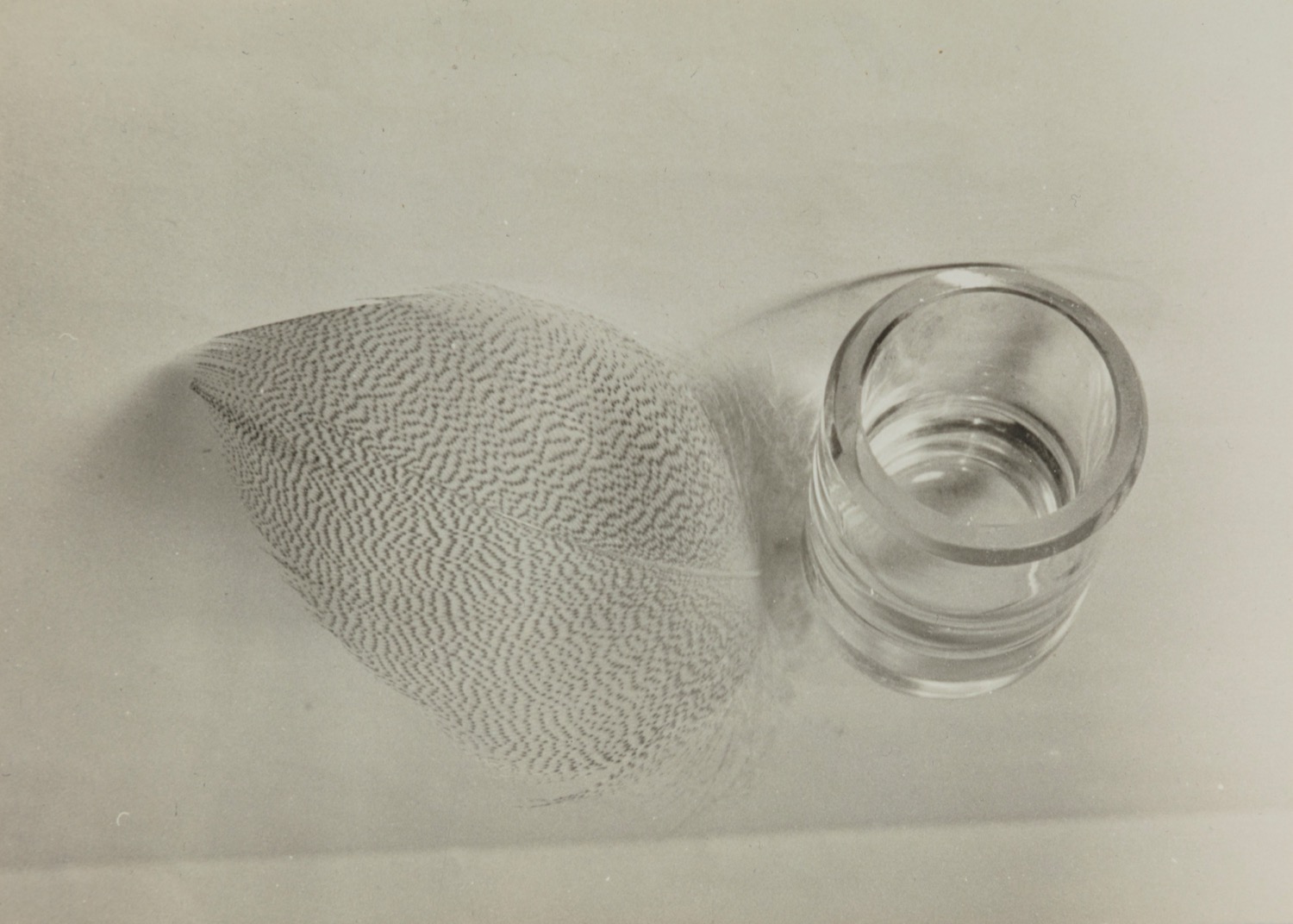 “L’assioma importante è che in arte il soggetto non ha nessuna importanza, quello che conta è che l’opera abbia raggiungo il cielo dell’arte: sia bella o no” scriveva Cavalli nel Manifesto della Bussola e queste parole possono guidare alla lettura di queste due immagini sintomatiche delle sue scelte. Nella natura morta prevale la lievità della piuma accostata alla fisicità del vaso di vetro, elementi accomunati dal fatto di disegnare sullo sfondo due delicatissime ombre appena accennate. Nel paesaggio, invece, a occupare lo spazio sono le linee orizzontali capaci di disegnare una voluta armonia. In entrambi i casi si conferma l’idea della predominanza della forma sul soggetto, del significante sul significato. Siamo anche di fronte a due superbi esempi di come si realizzano stampe in high key, cioè, facendo prevalere i toni chiari che si inseguono in tutte le loro sfumature.